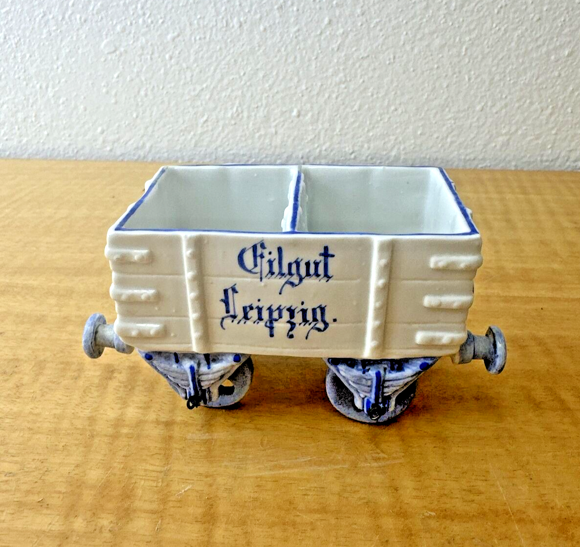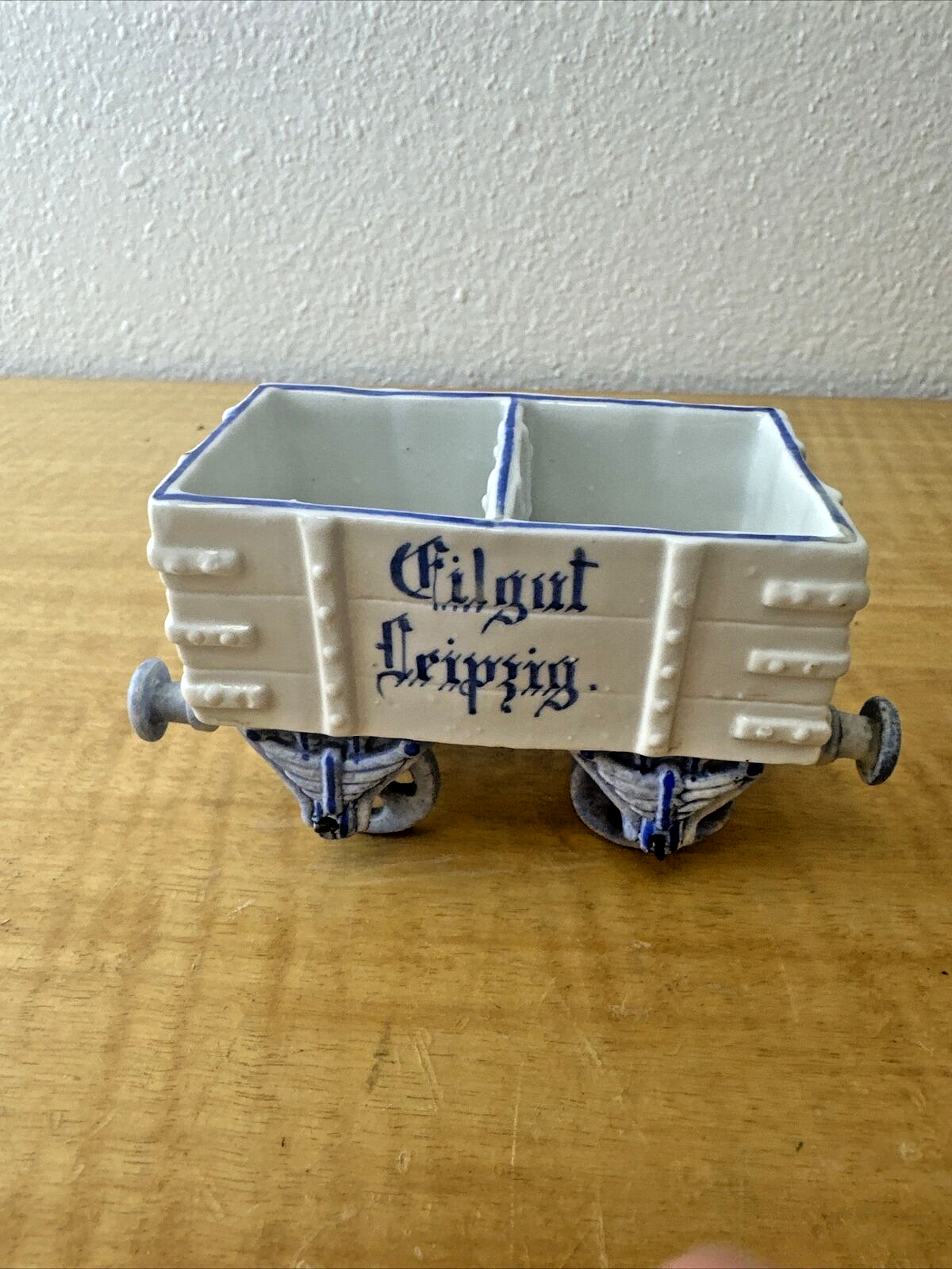Unusual Meissen Type Porcelain Double Salt Cellar / Dip in Railcar Coalcar Form