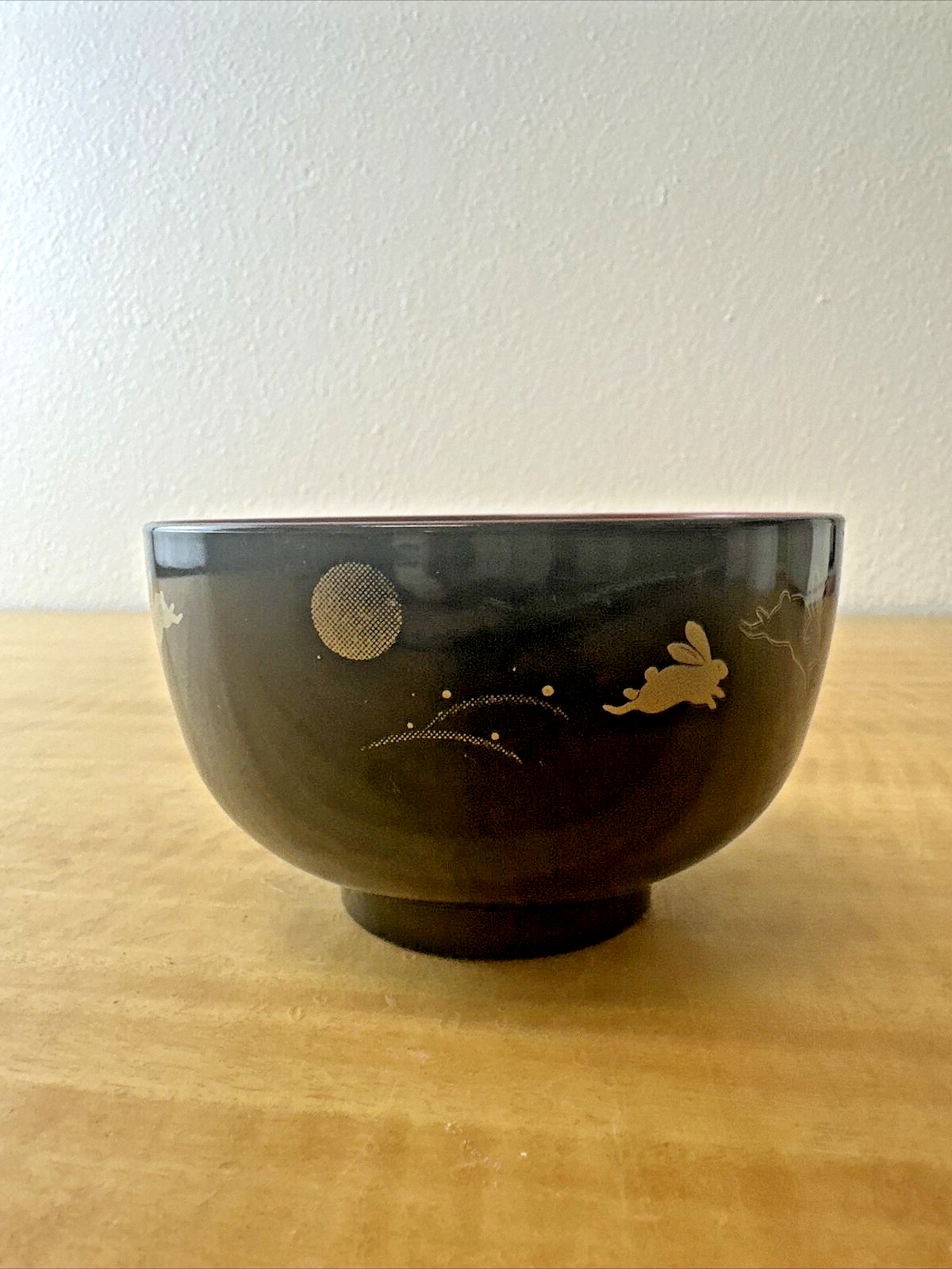 Daiso Soup Bowl made in japan design Rabbit Yamanaka-nuri red black