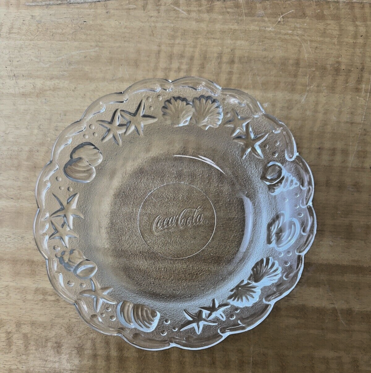 Rare Vintage Coca Cola Embossed Clear Glass Round Plate Dish