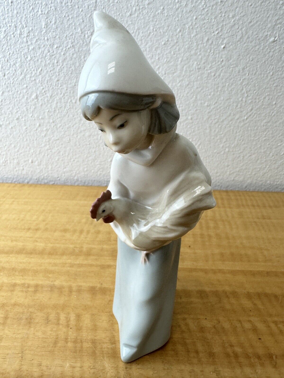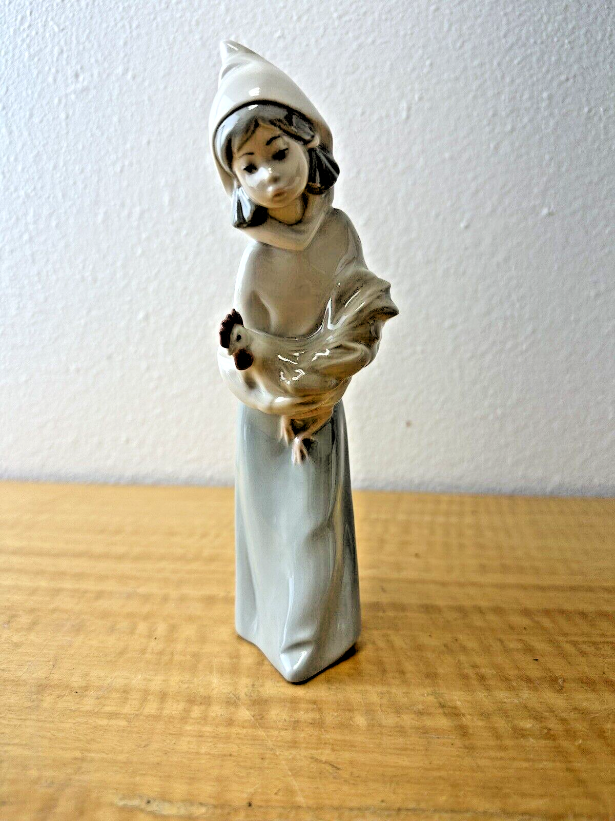 VINTAGE PORCELAIN FIGURINE~GIRL WITH ROOSTER~1969~LLADRO~8."