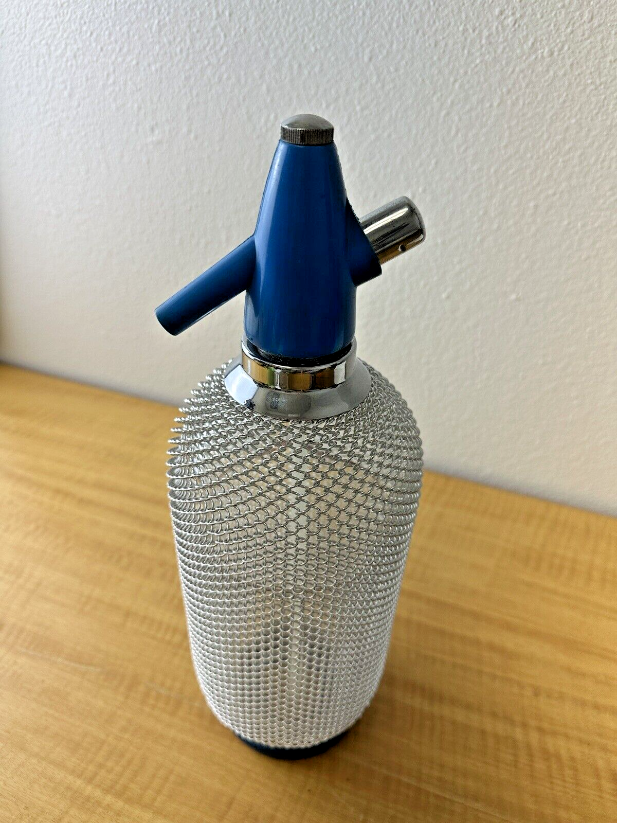 Vintage Art Deco Seltzer Bottle Bar Soda Syphon Wire Mesh. Missing wingnut