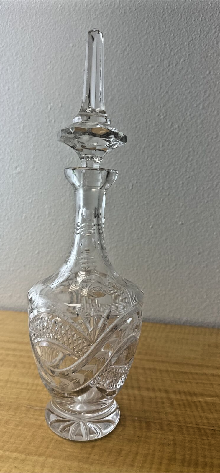 Vintage West Germany Hand Cut Lead Crystal Decanter Barware 16" w/ Stopper