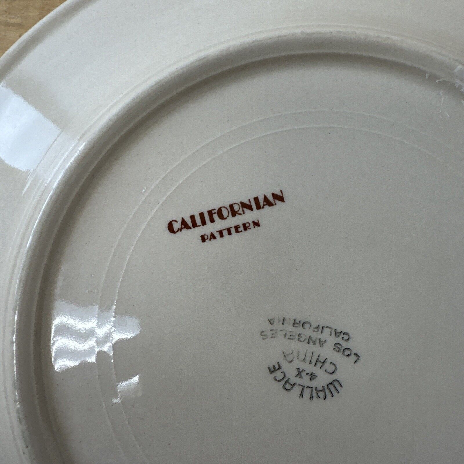 Wallace China Californian Restaurant DInner Plate Desert Ware 9.5" Vintage