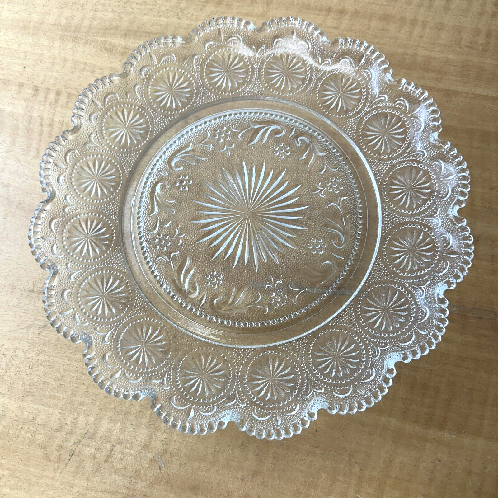 Vintage Clear Glass Fancy Plate 10" Flower Design
