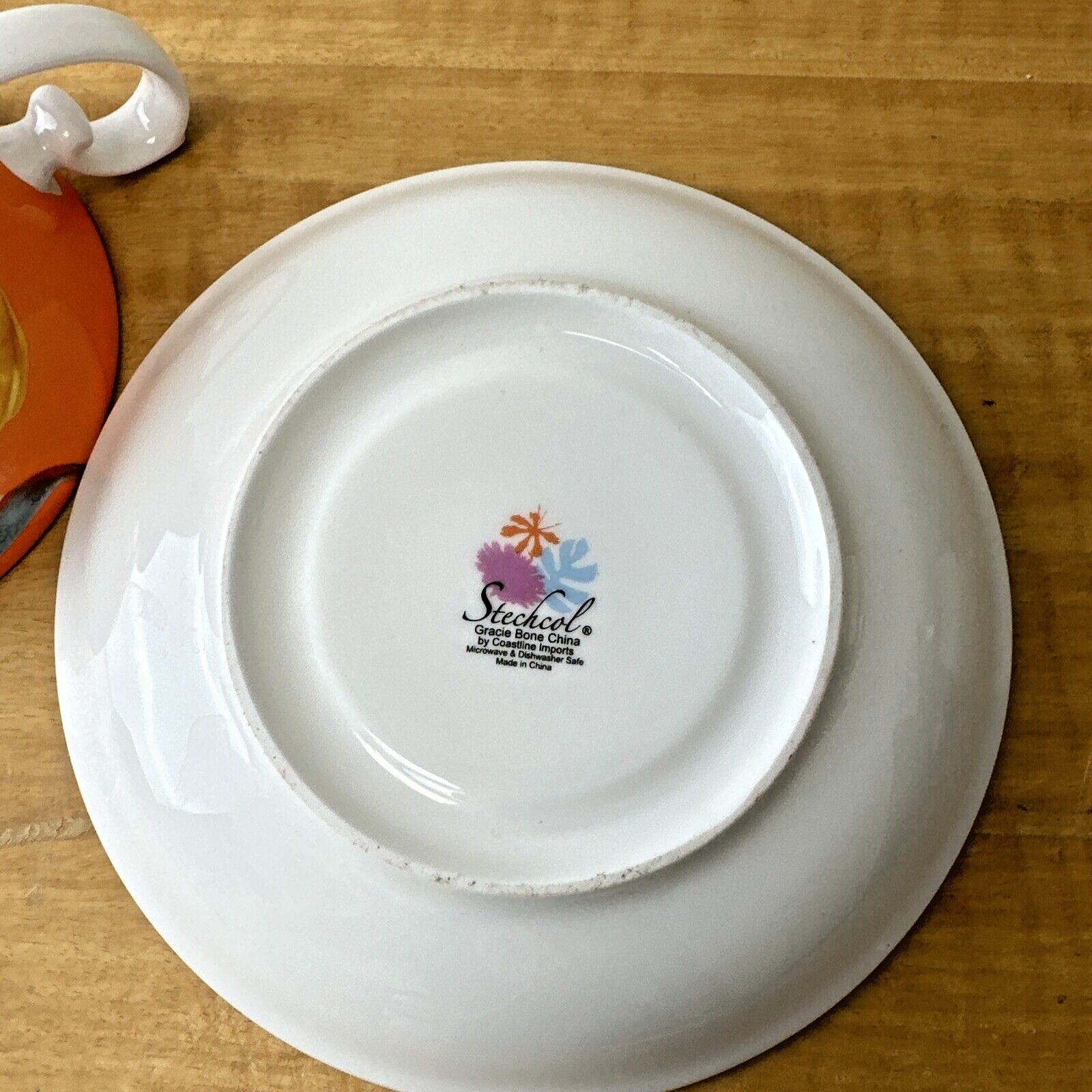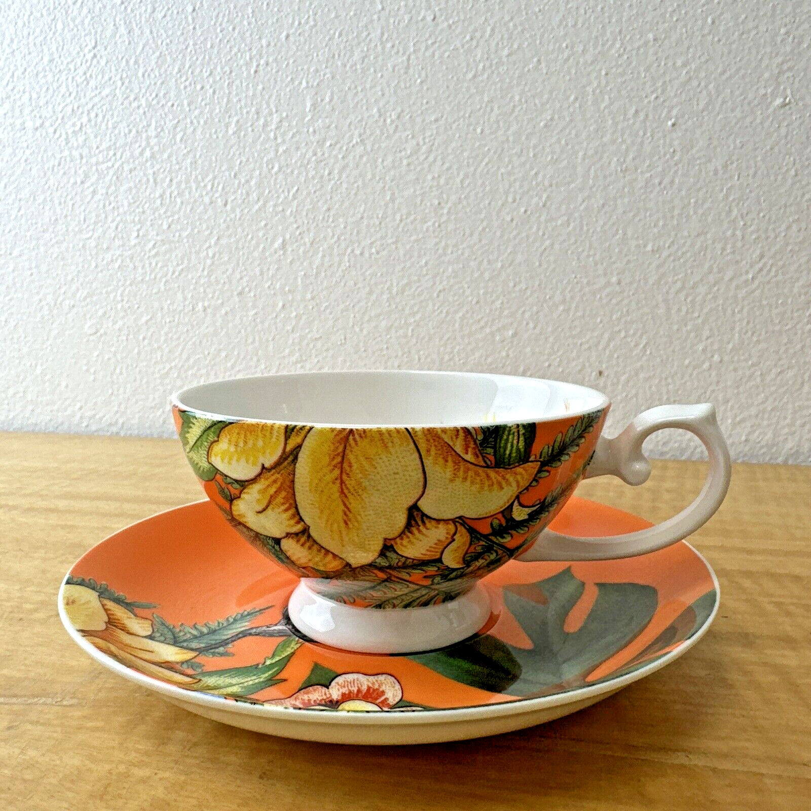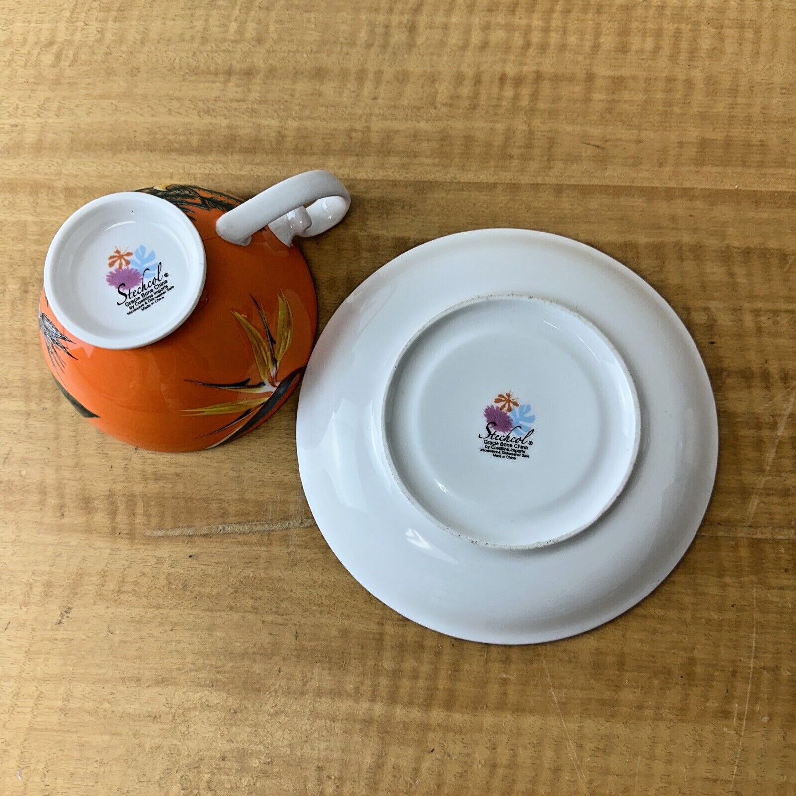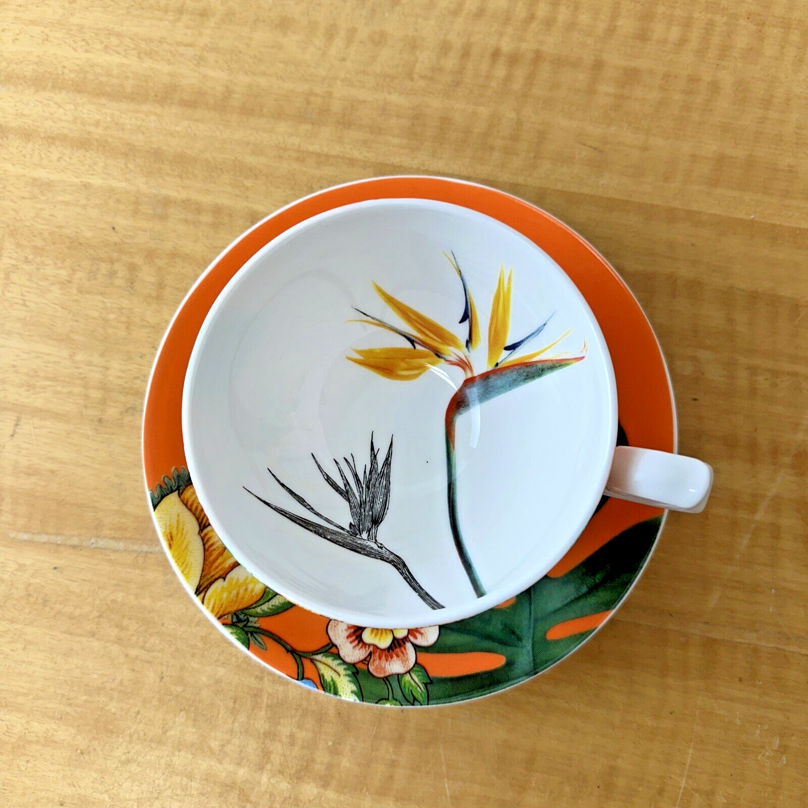 Stechcol Gracie Bone China Teacup & Saucer Birds of Paradise & Monstera Leaf