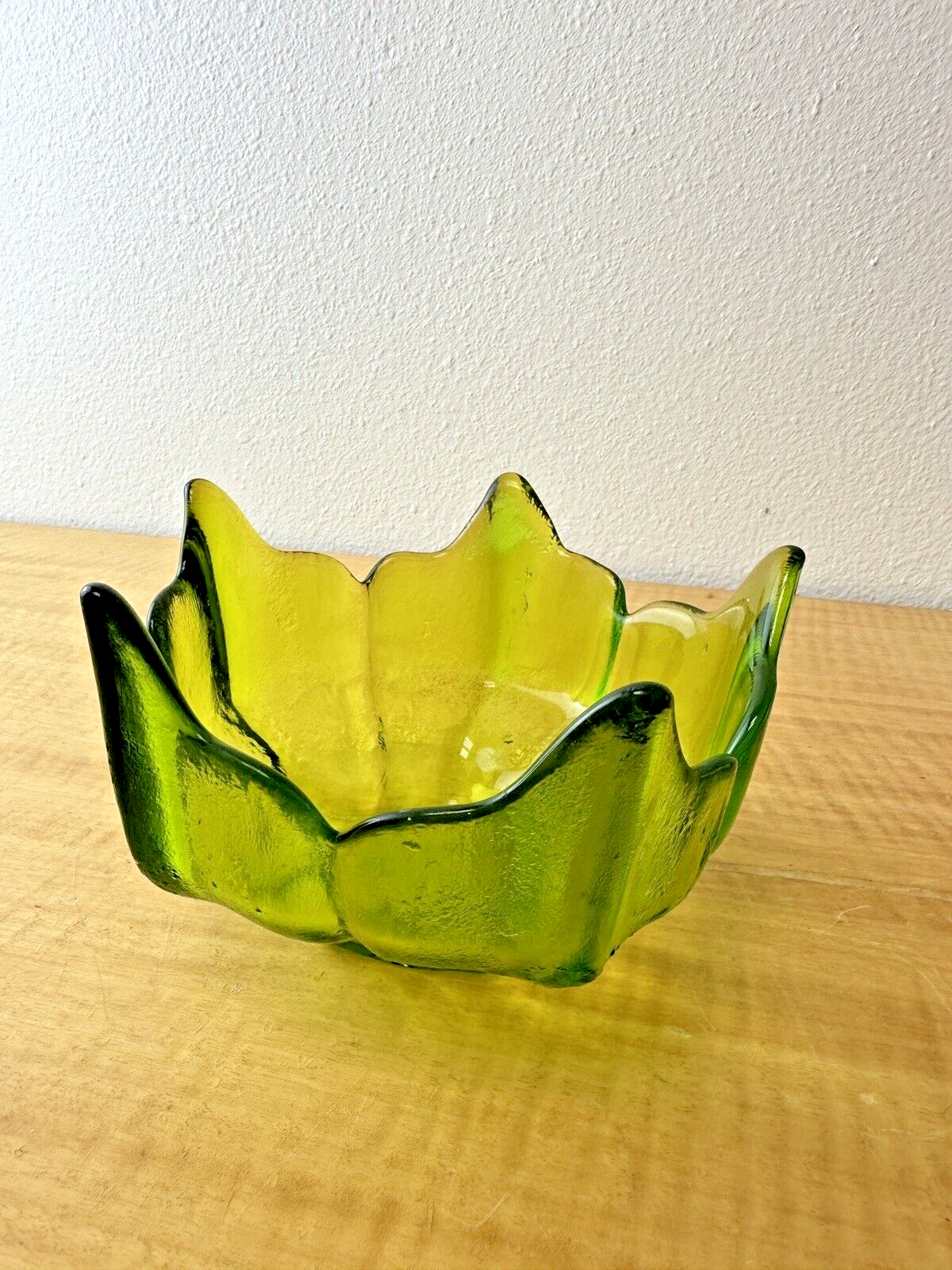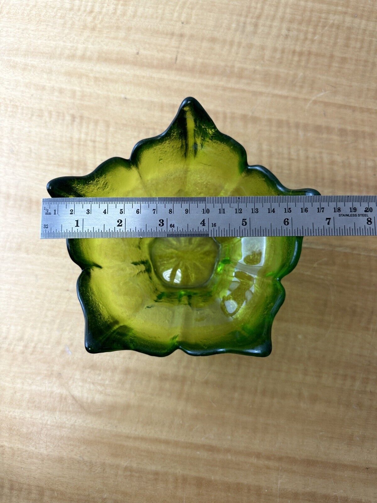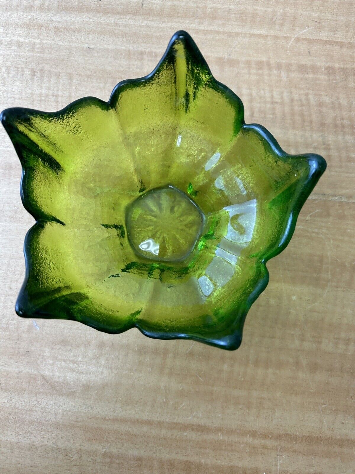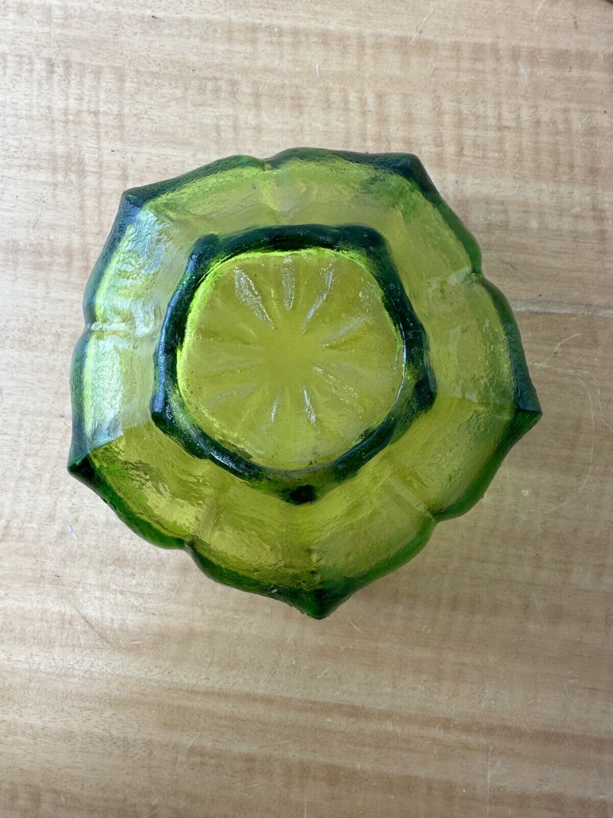 Vintage Viking Green Glass Lotus Candy Dish Bowl 6.5" x 3"