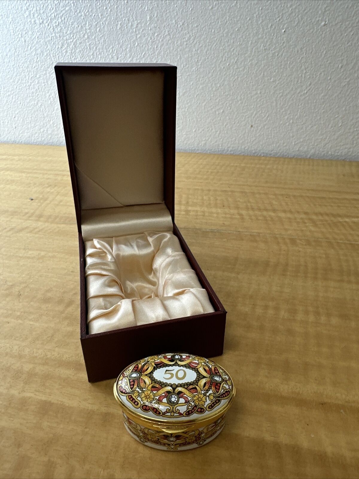 Staffordshire Enamel Hinged Trinket Pill England Box - 50 - Jan Marshall