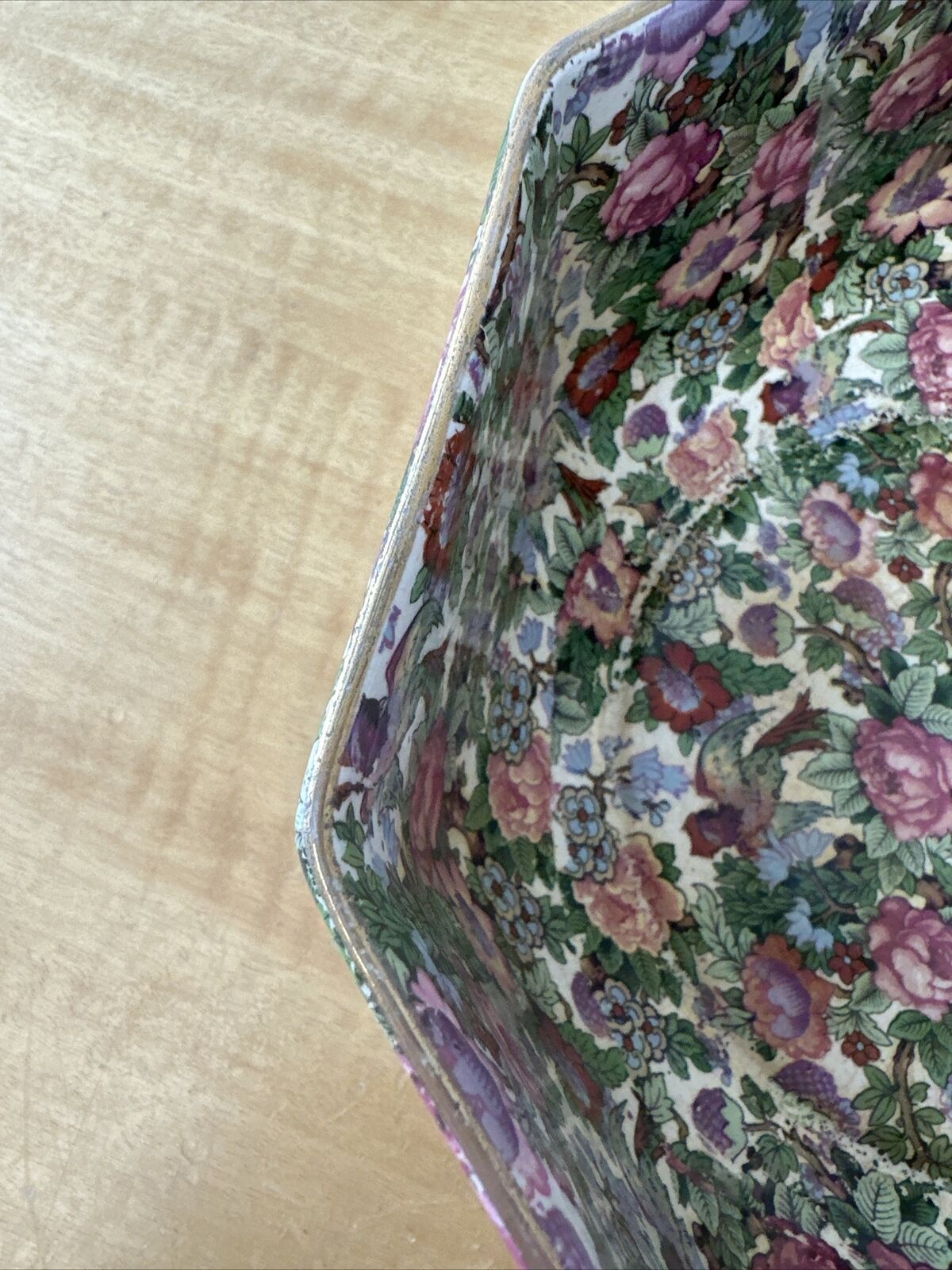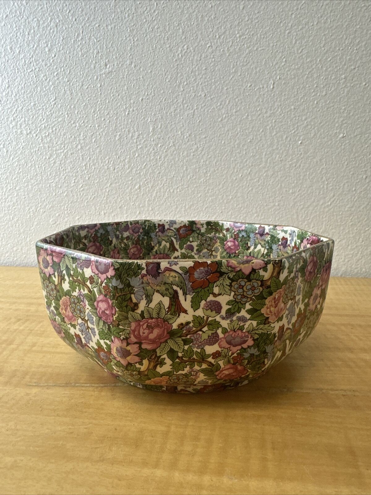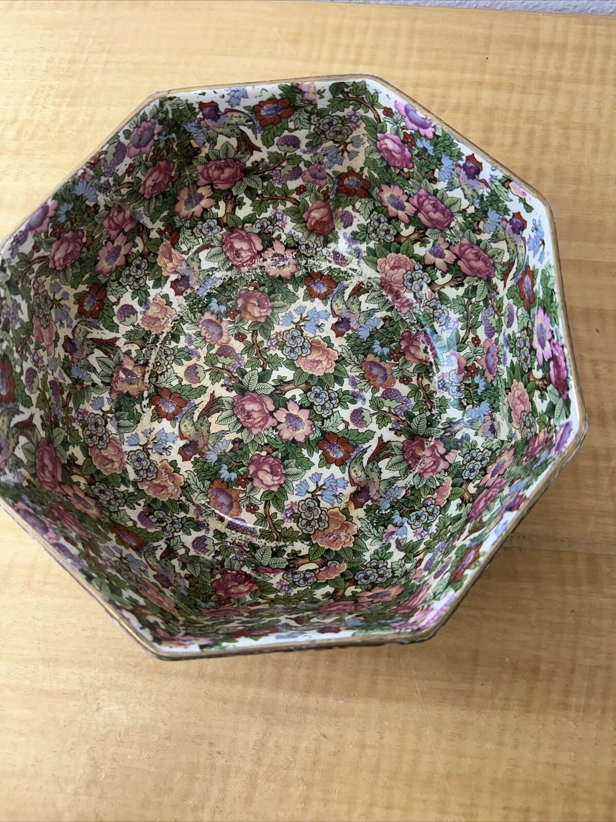 Crown Ducal Early Rare England Ivory Chintz Chintz Octagonal Serving Bowl 8.5”