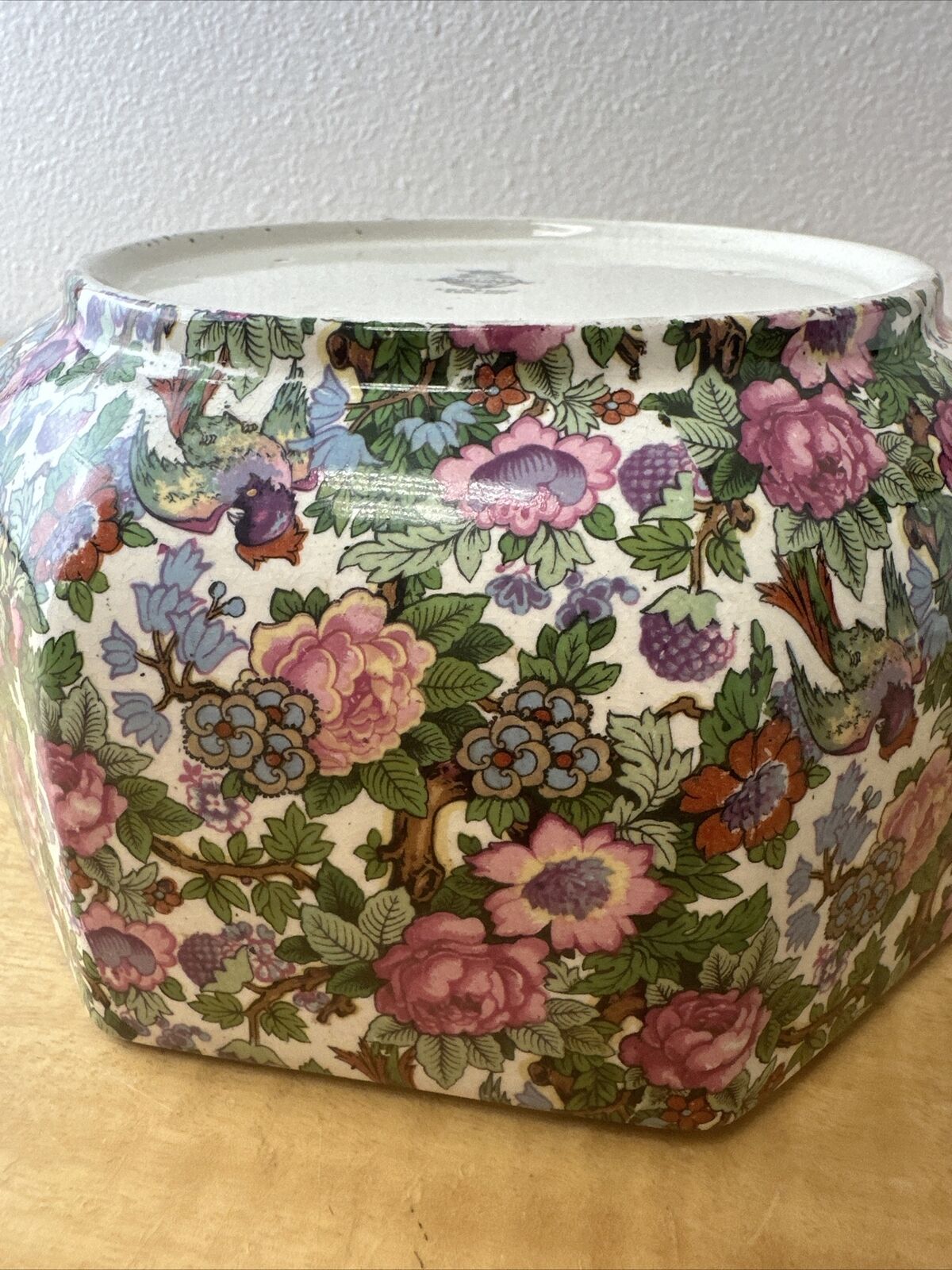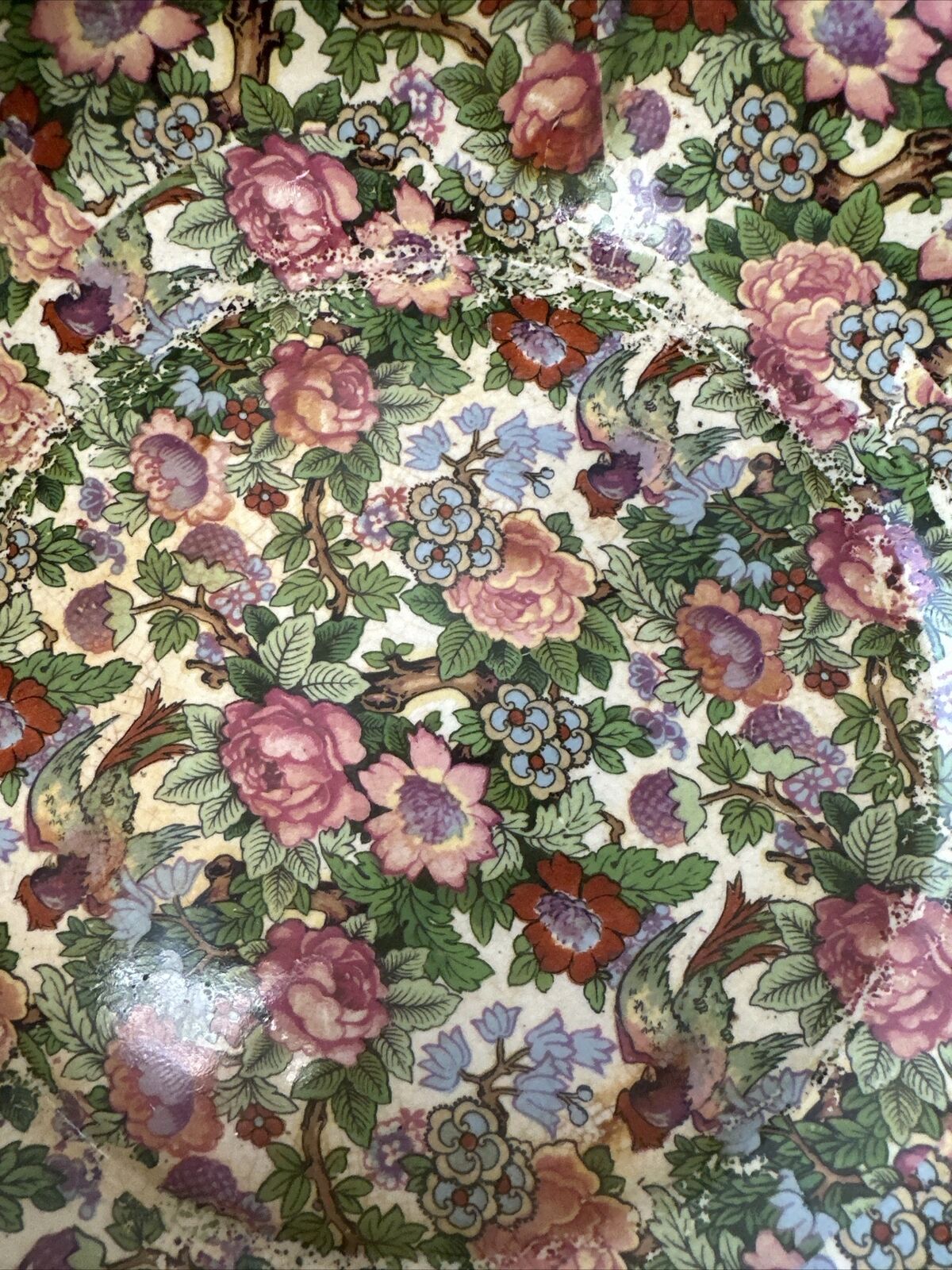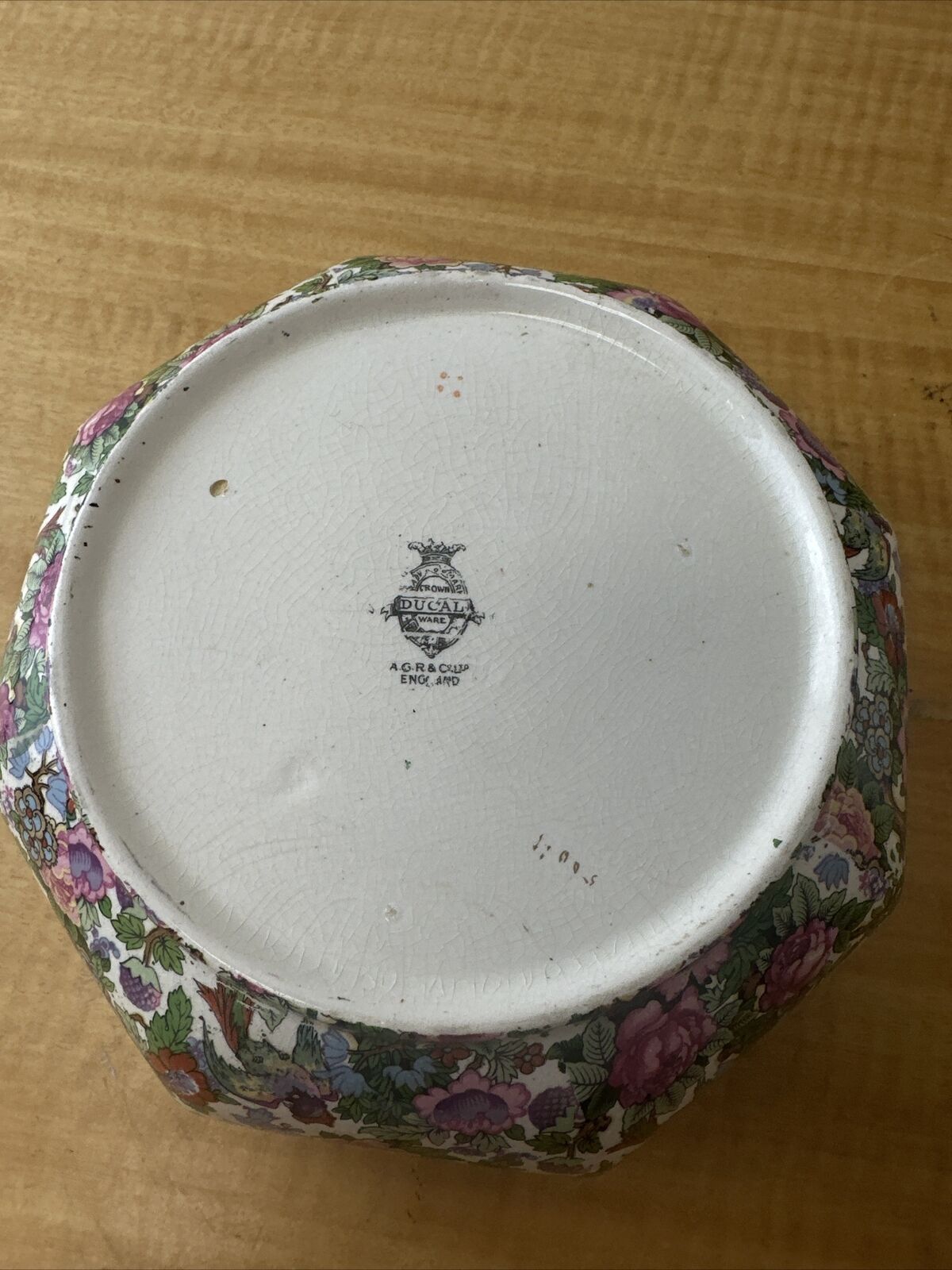 Crown Ducal Early Rare England Ivory Chintz Chintz Octagonal Serving Bowl 8.5”