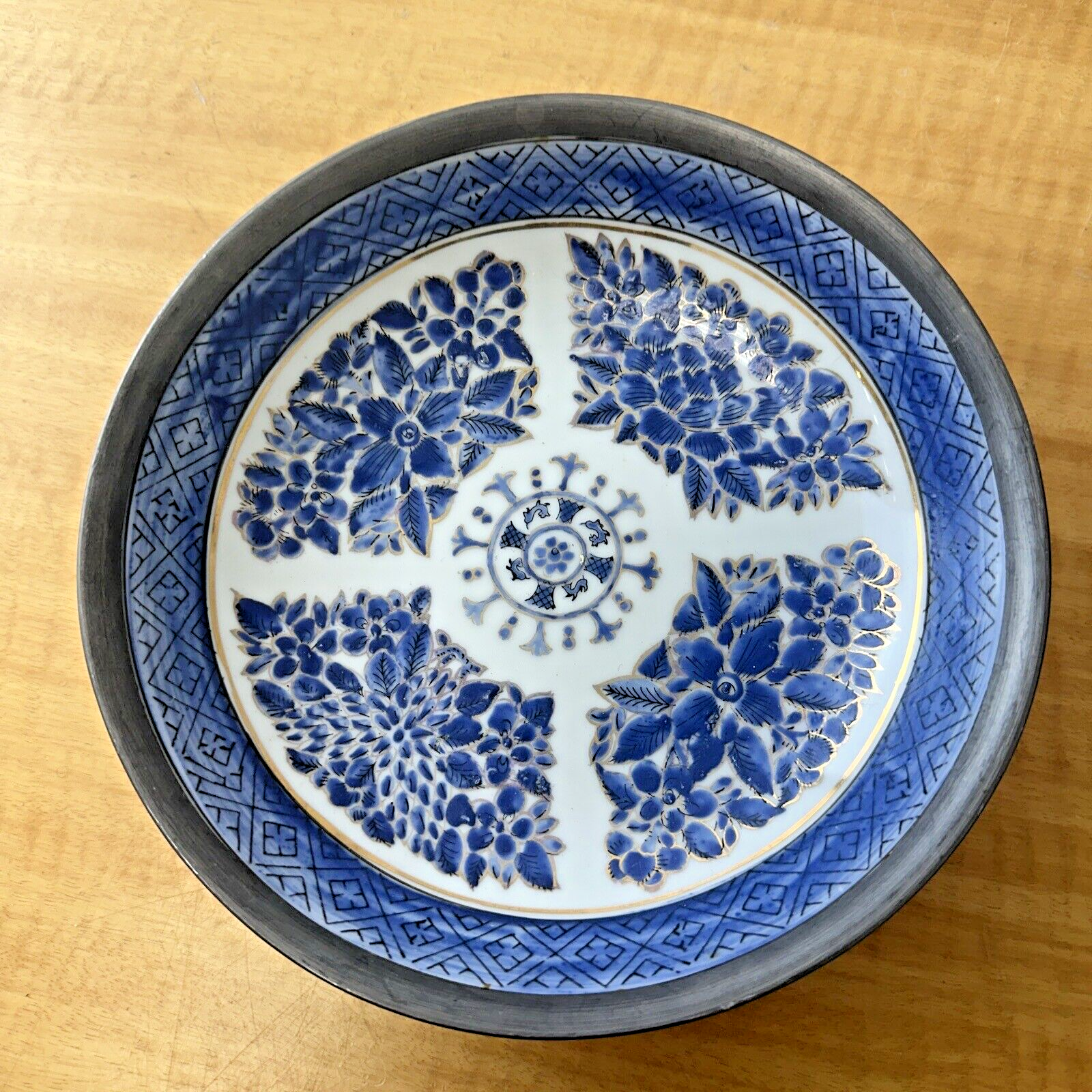 Blue And White Japanese Porcelain Ware Bowl/Ashtray Encased In Pewter