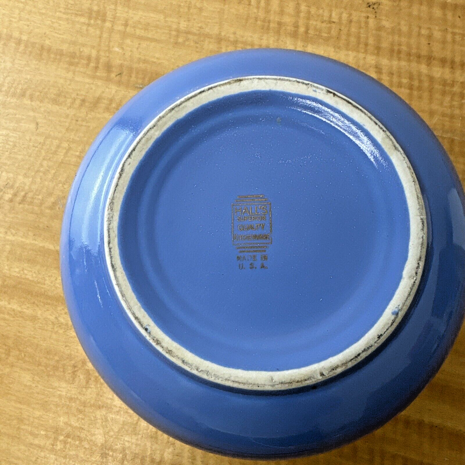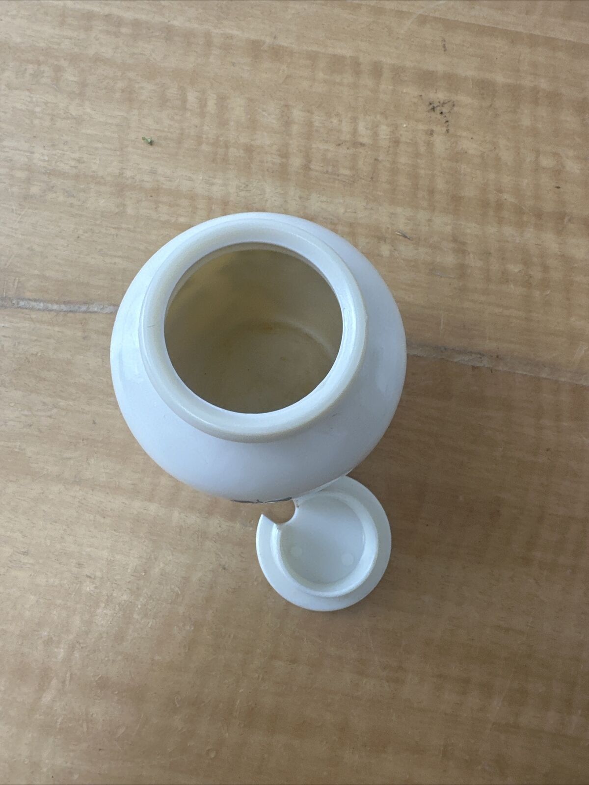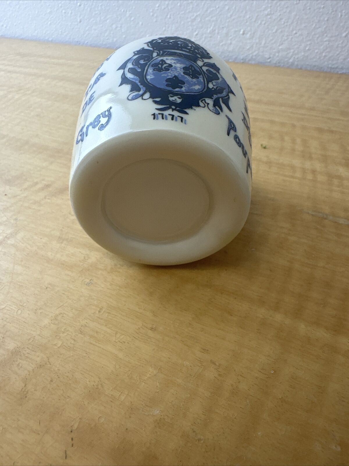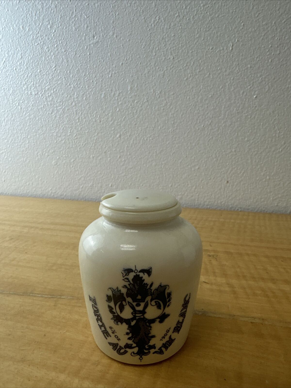 Milk Glass W/Blue Graphics Pot,Fine De Dijon Grey Poupon, 60's France with lid