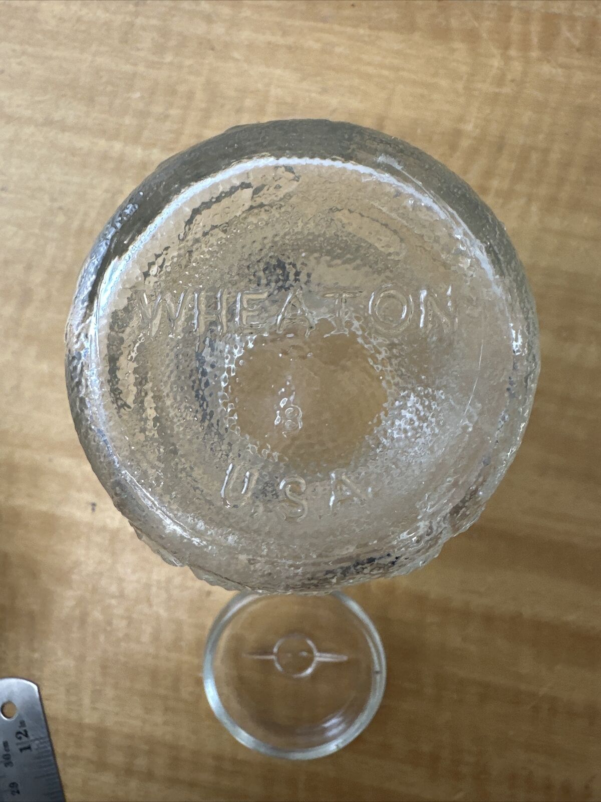 VTG Wheaton Glass Jar 8 Oz No Lid, Etched Glass