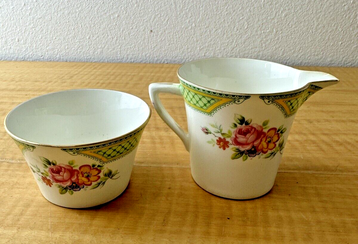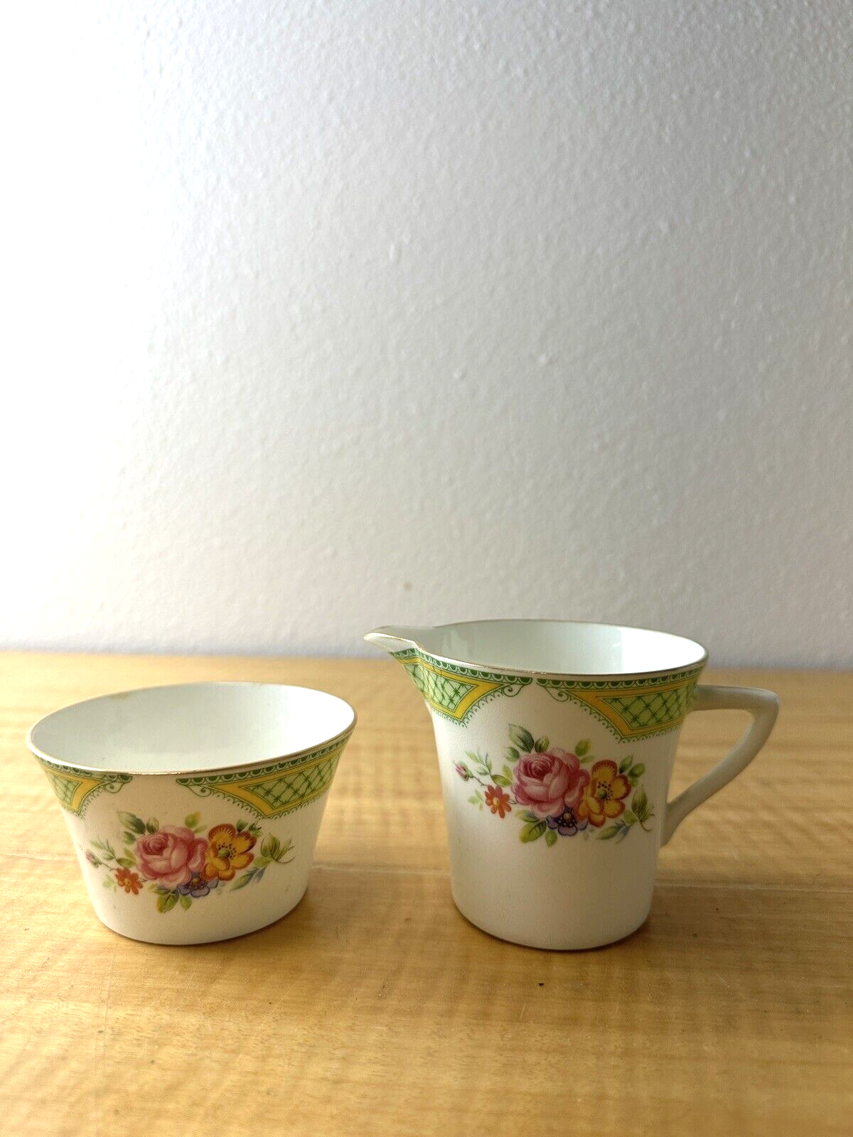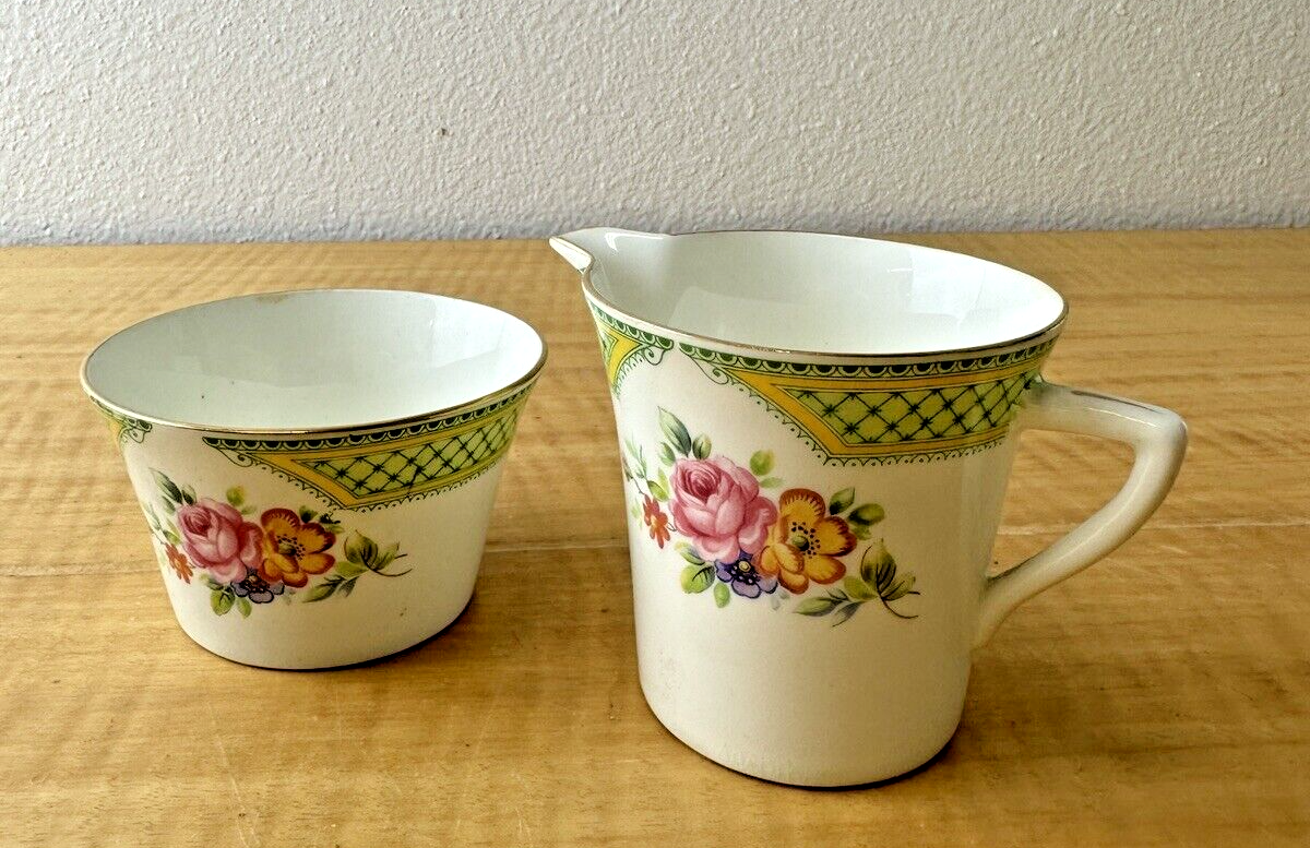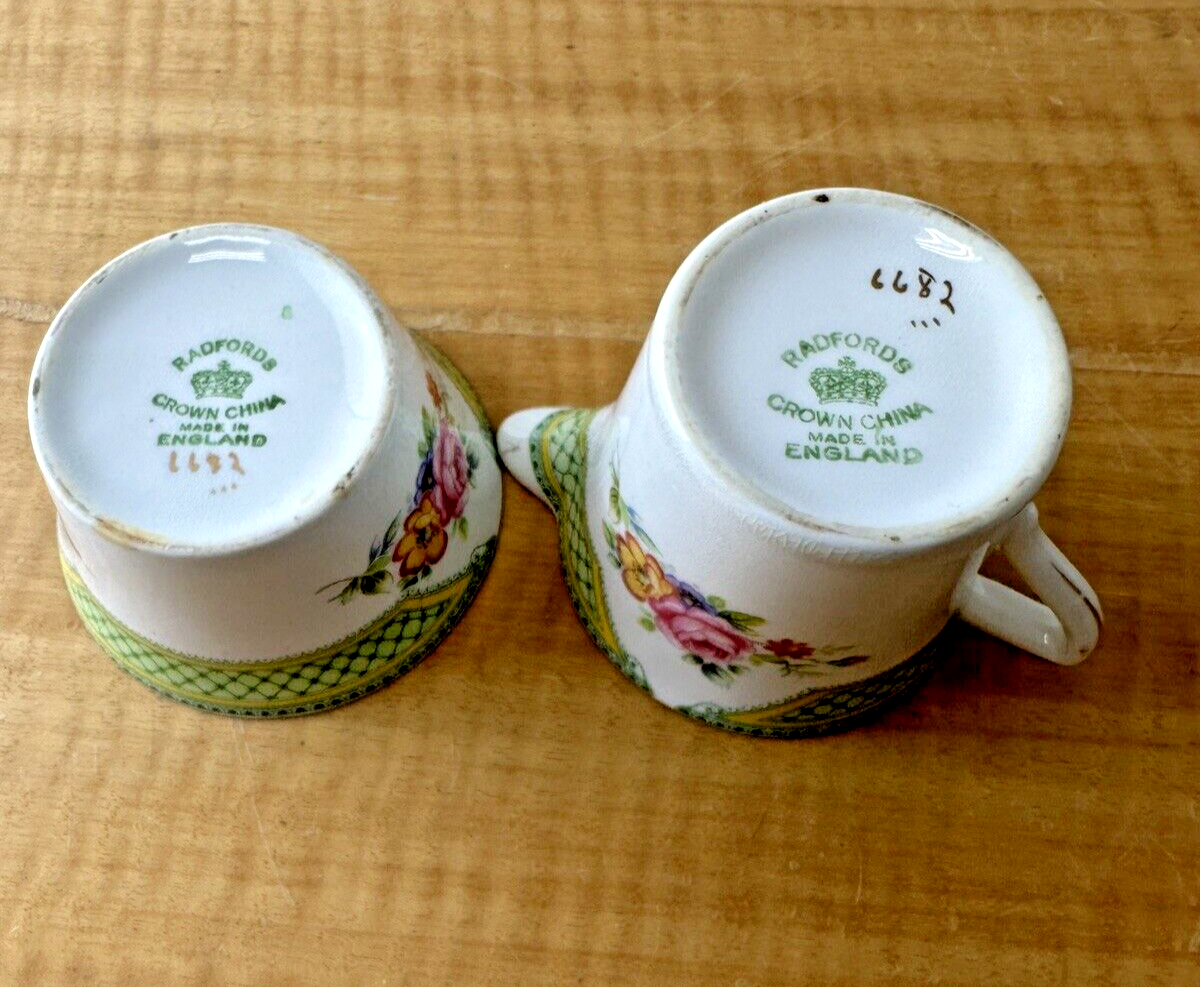 Radfords Crown China Cream and Sugar Green floral England, vintage