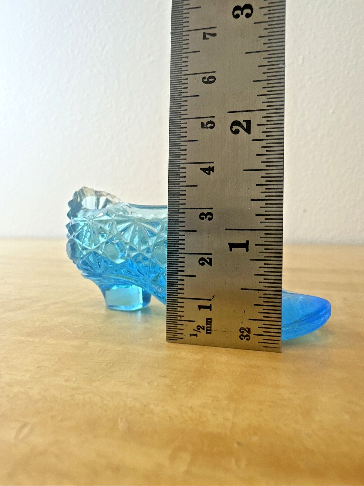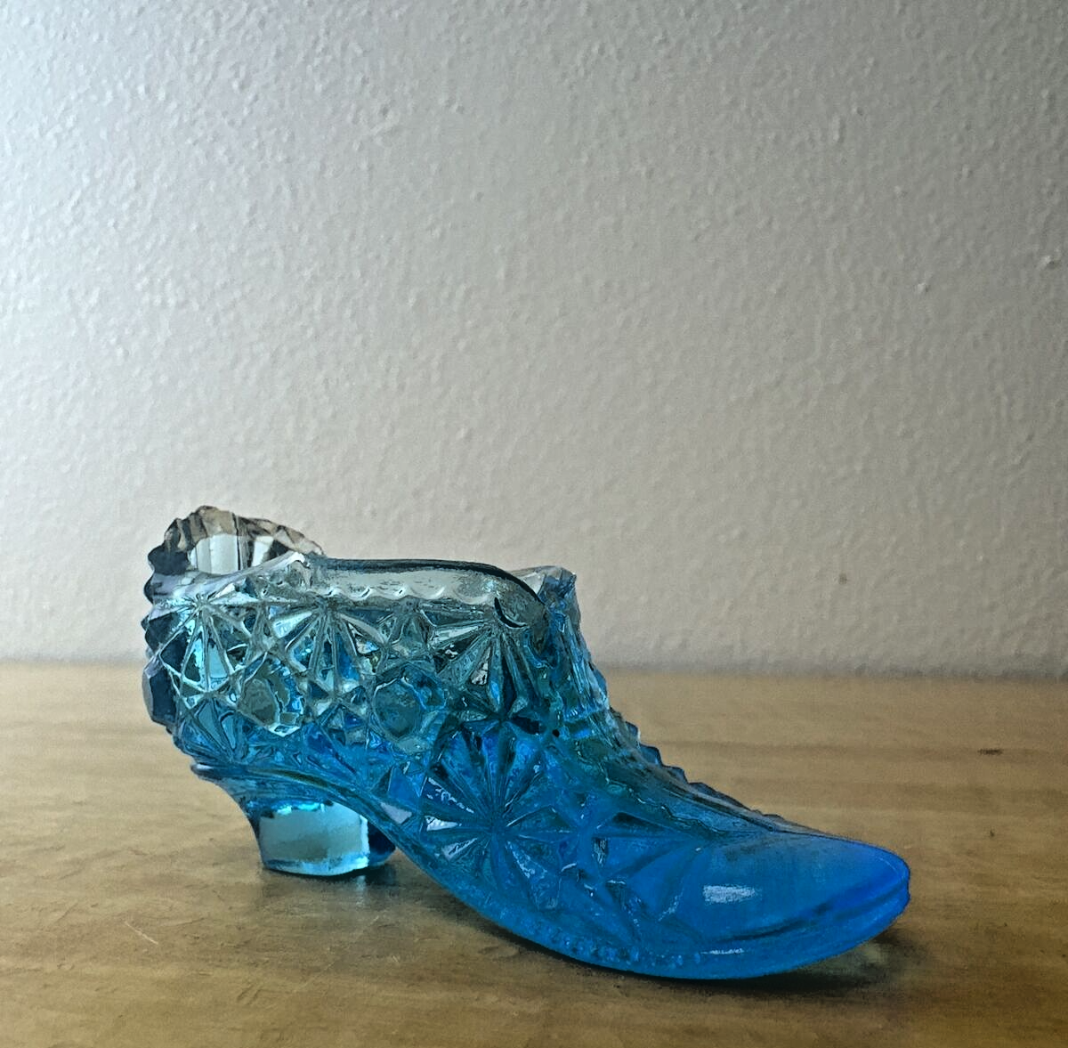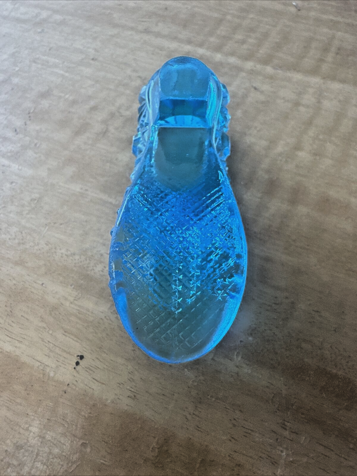 Vtg FENTON art GLASS ice blue shoe Slipper daisy & button