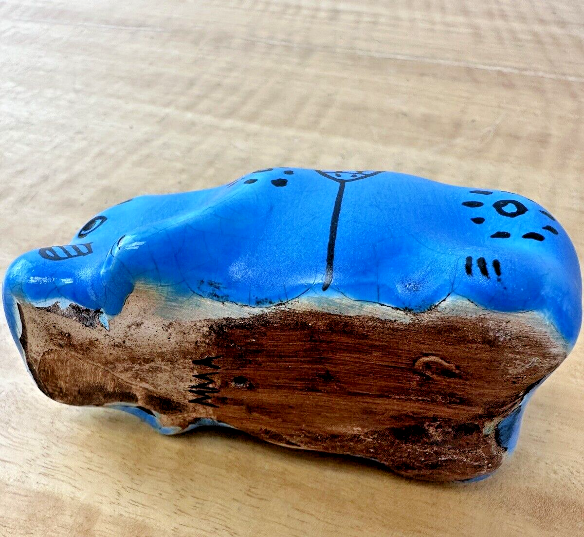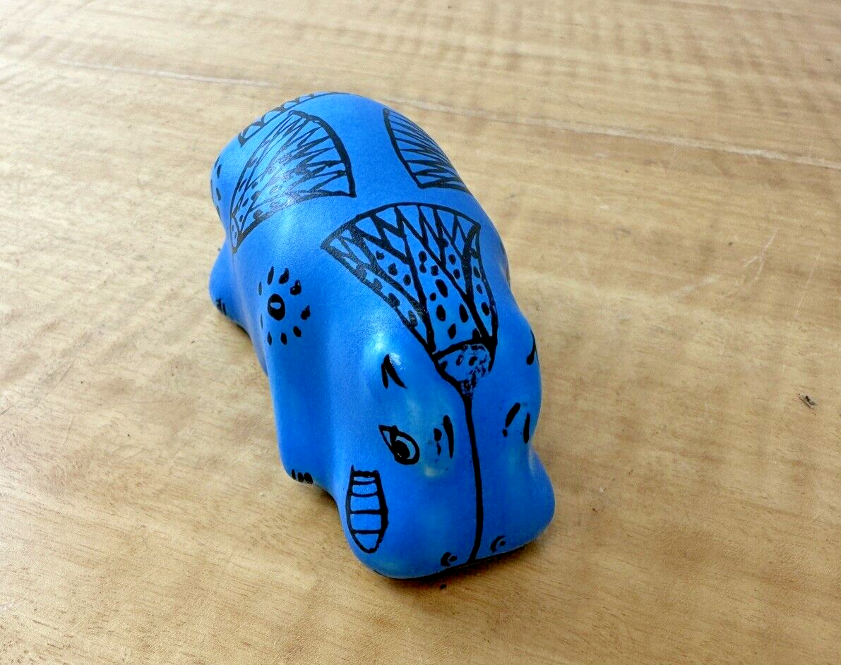 Hippopotamus Ceramic Art Figurine African Blue Small 3.5"