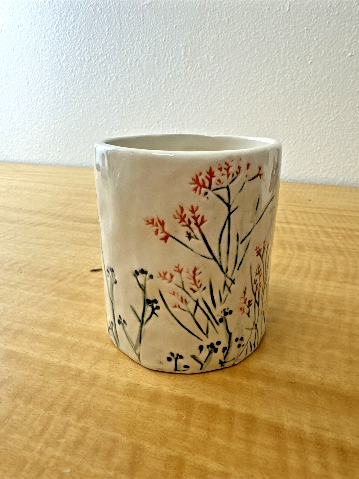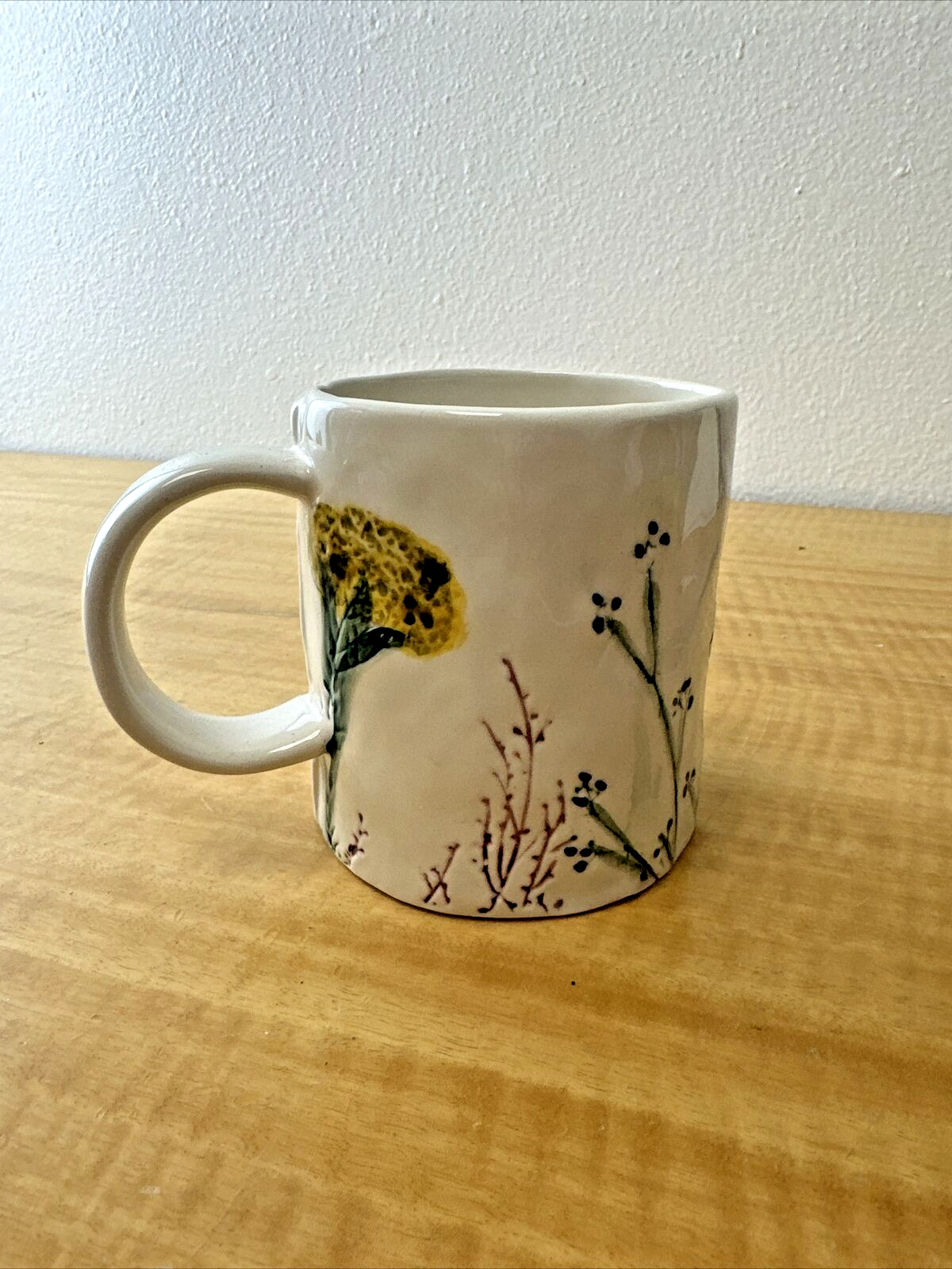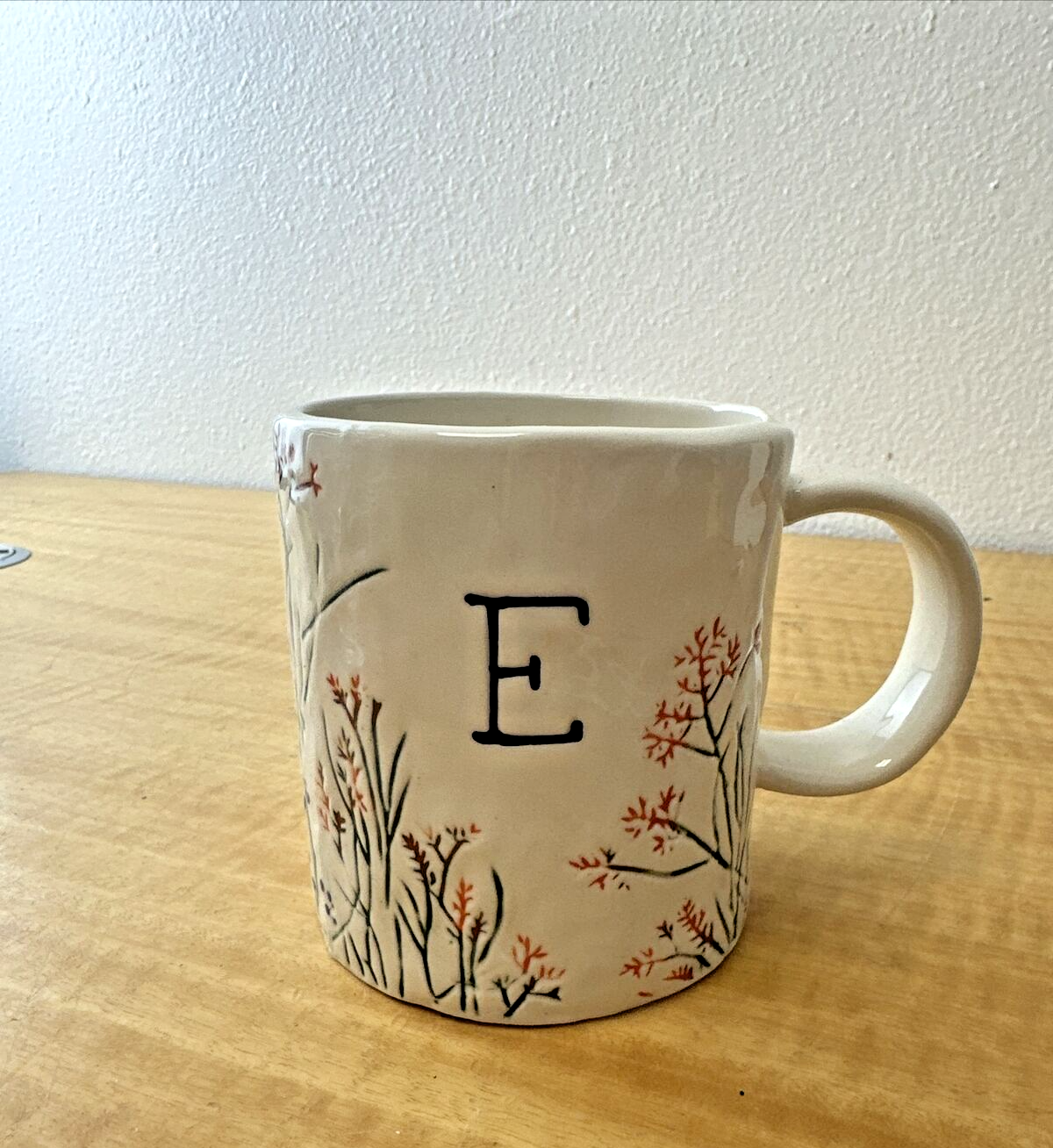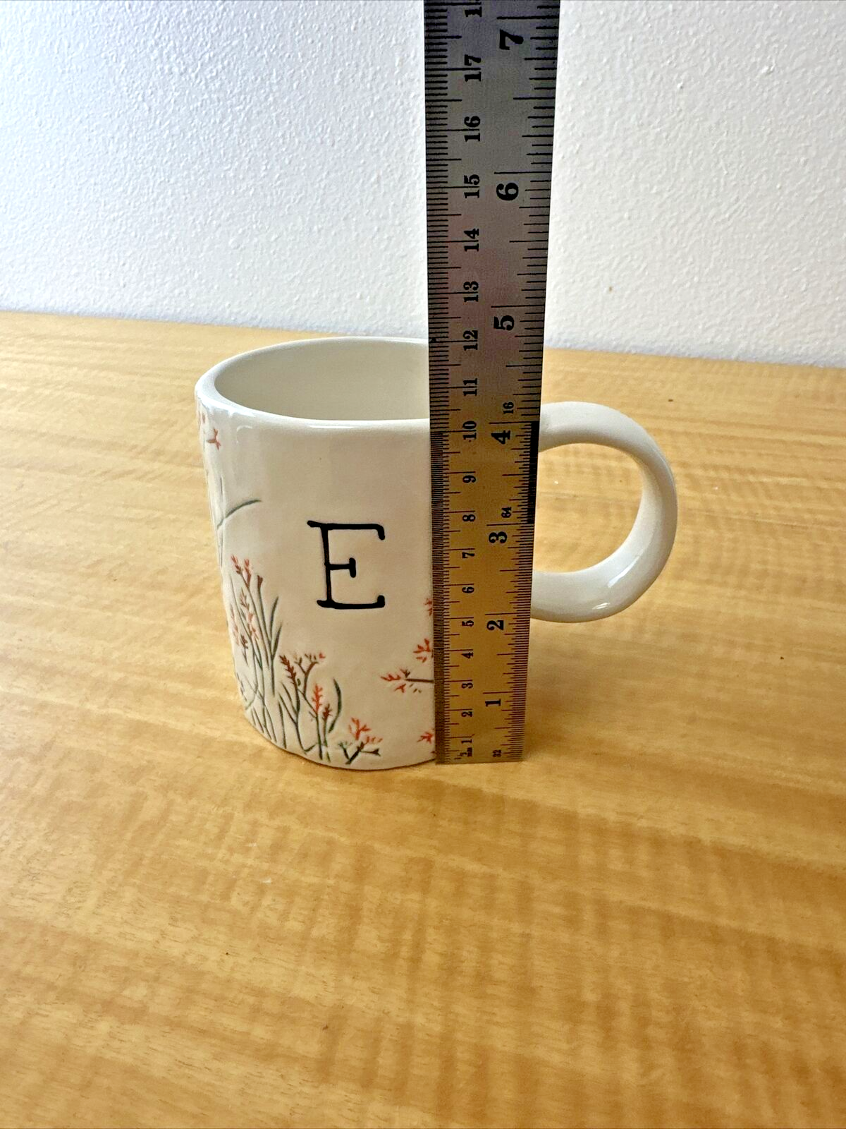ANTHROPOLOGIE Dagny mug Initial Letter E Floral Botanical Cottagecore