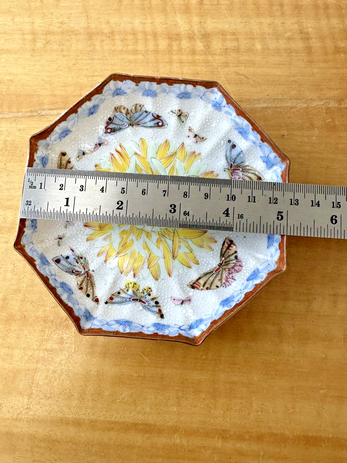 Vintage Japanese Sushi/Serving Shallow Pedestal Dish ~ Hand Painted 6.75"x6.75"