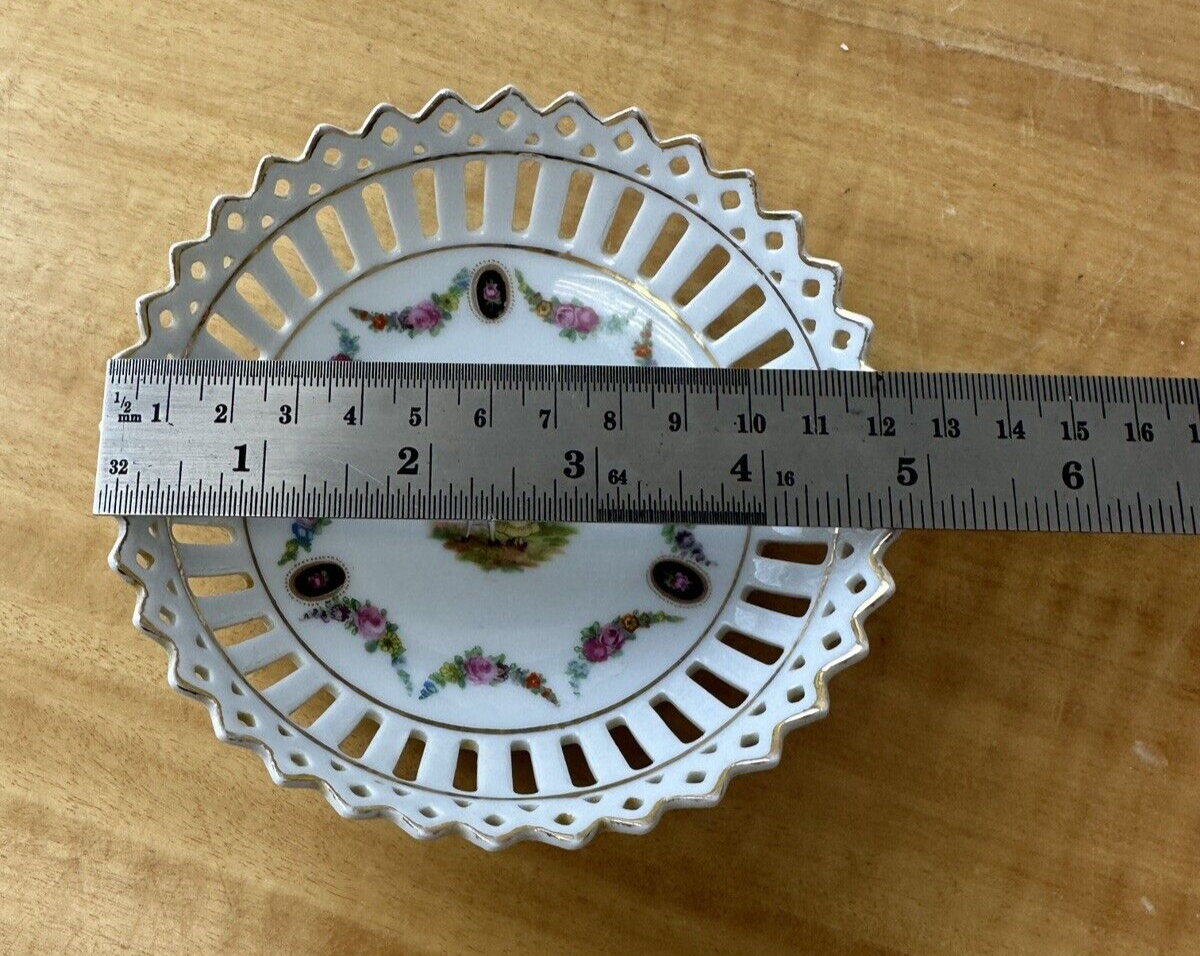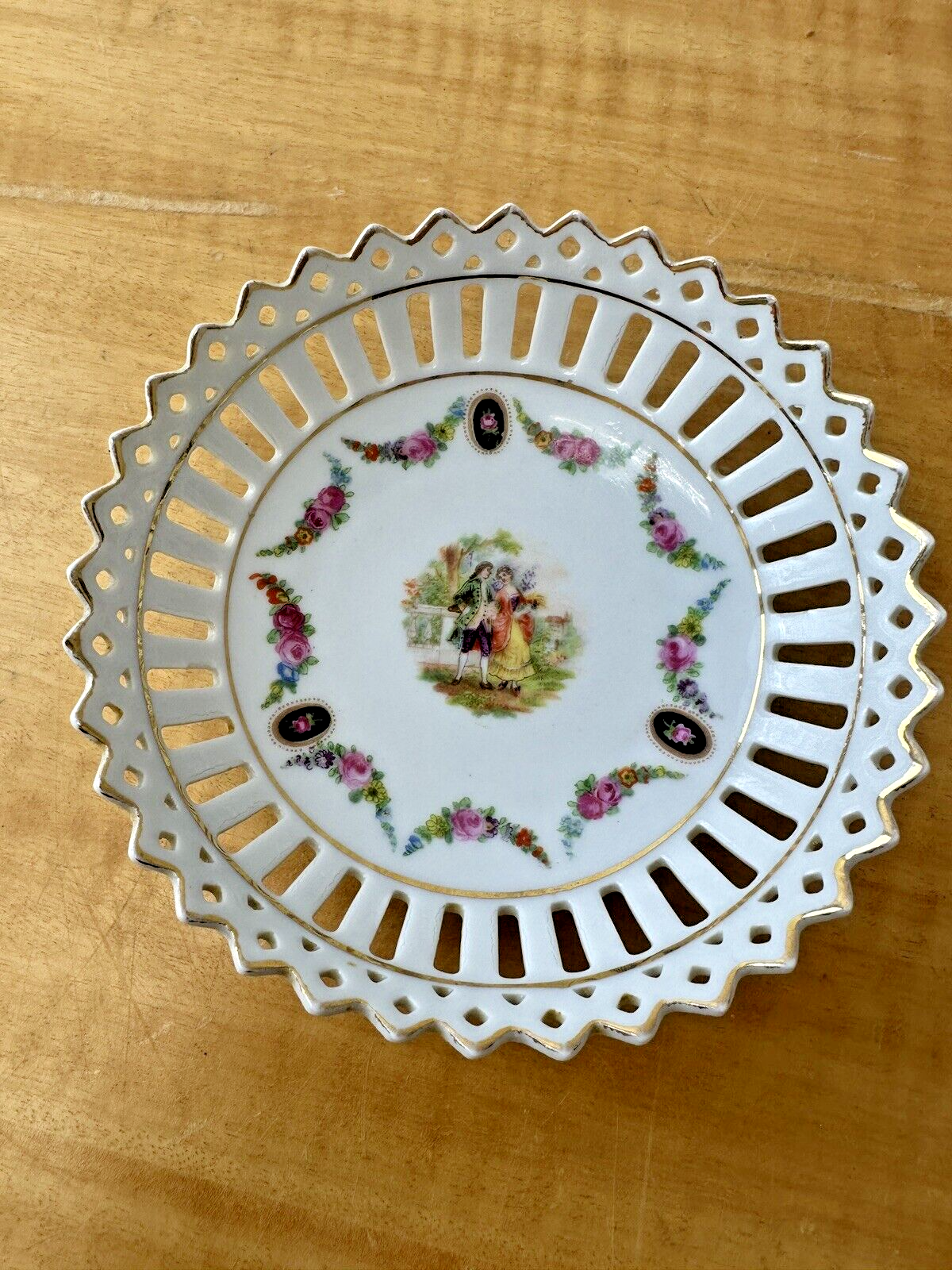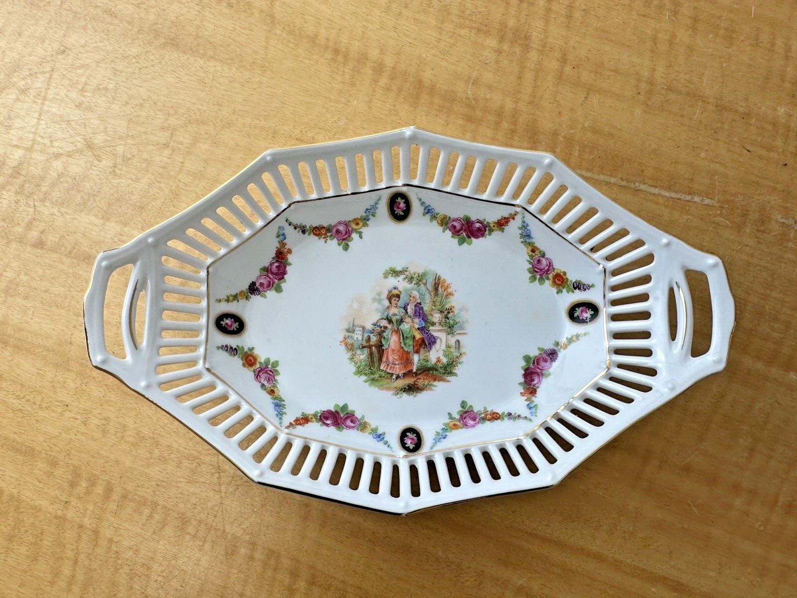 Vintage Schumann Bavaria Porcelain Reticulated Victorian Couple Floral Dish