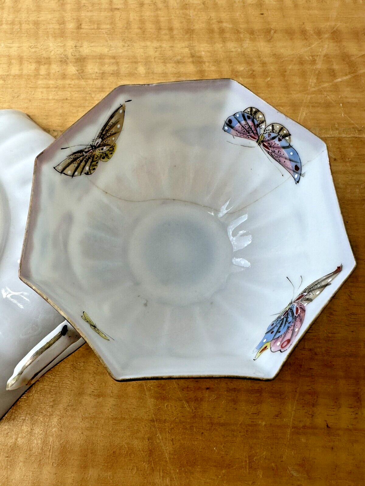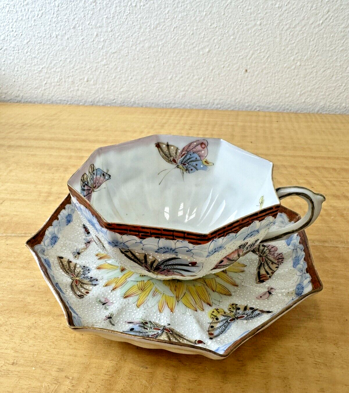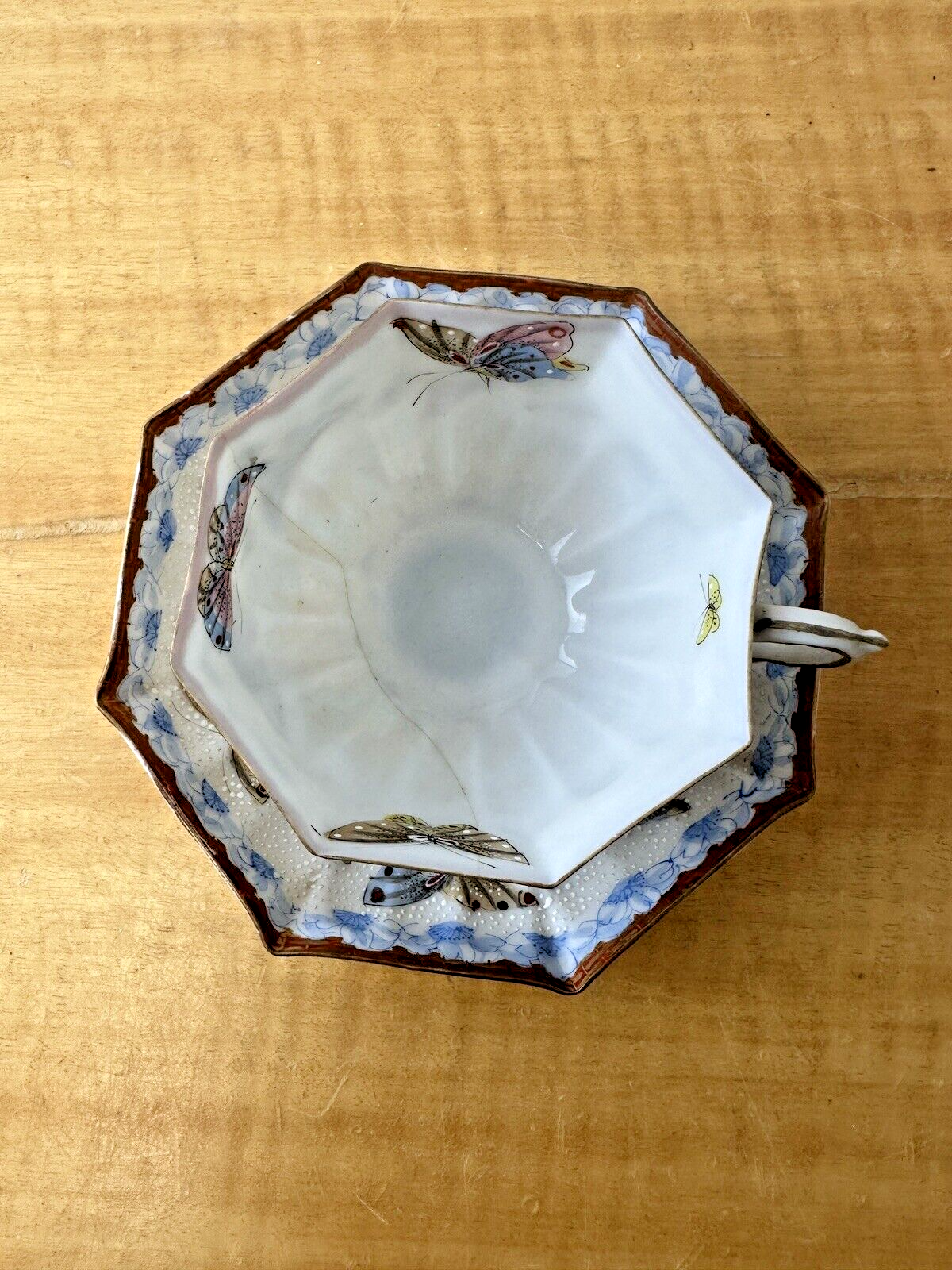 Kutani Egg Shell Porcelain Butterfly Cup and Saucer Meiji Period