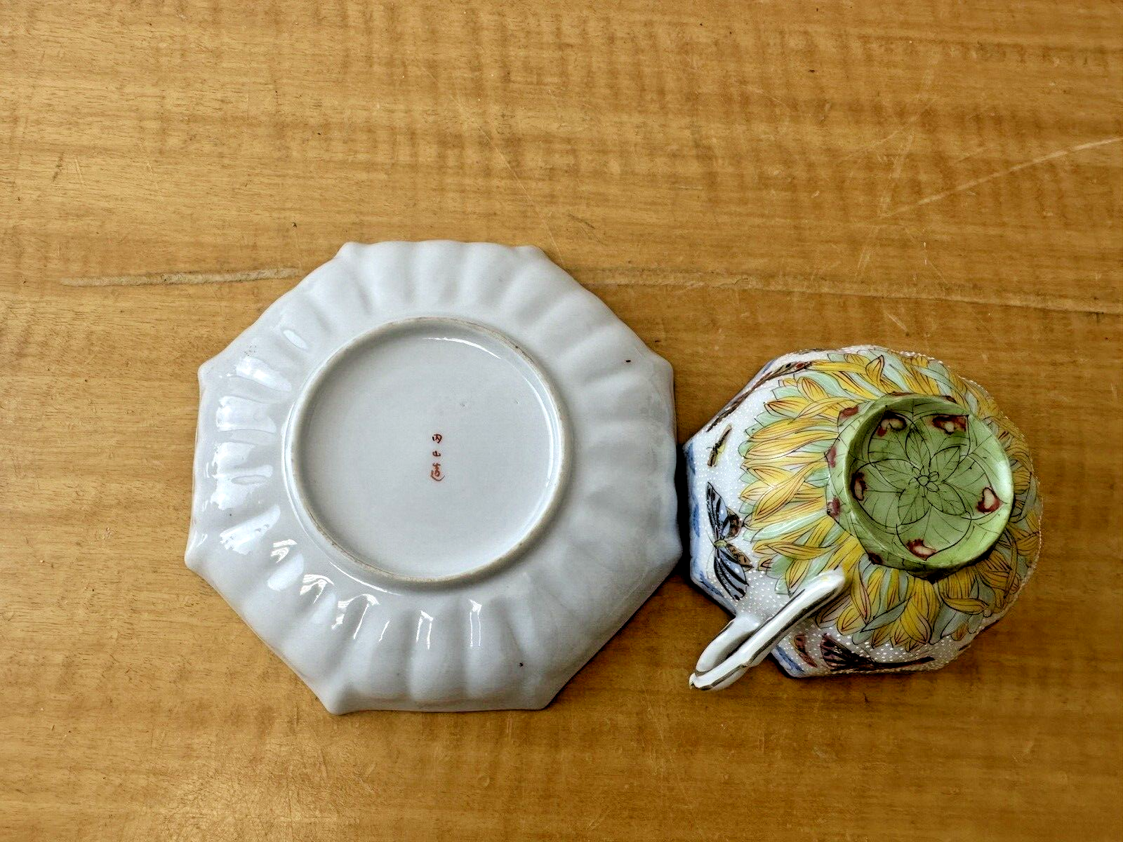 Gorgeous! Kutani Egg Shell Porcelain Bird Cup and Saucer Meiji Period