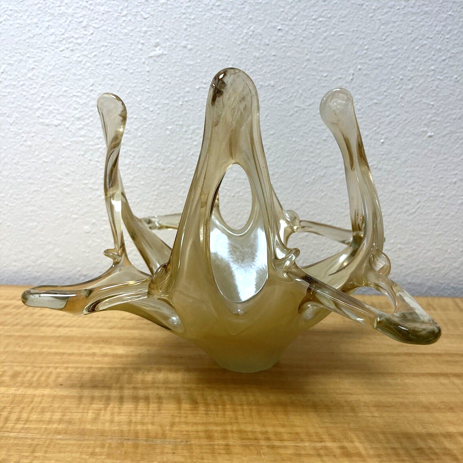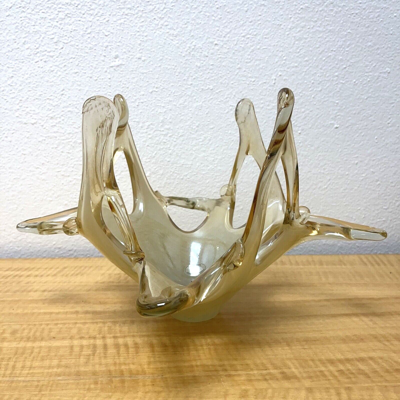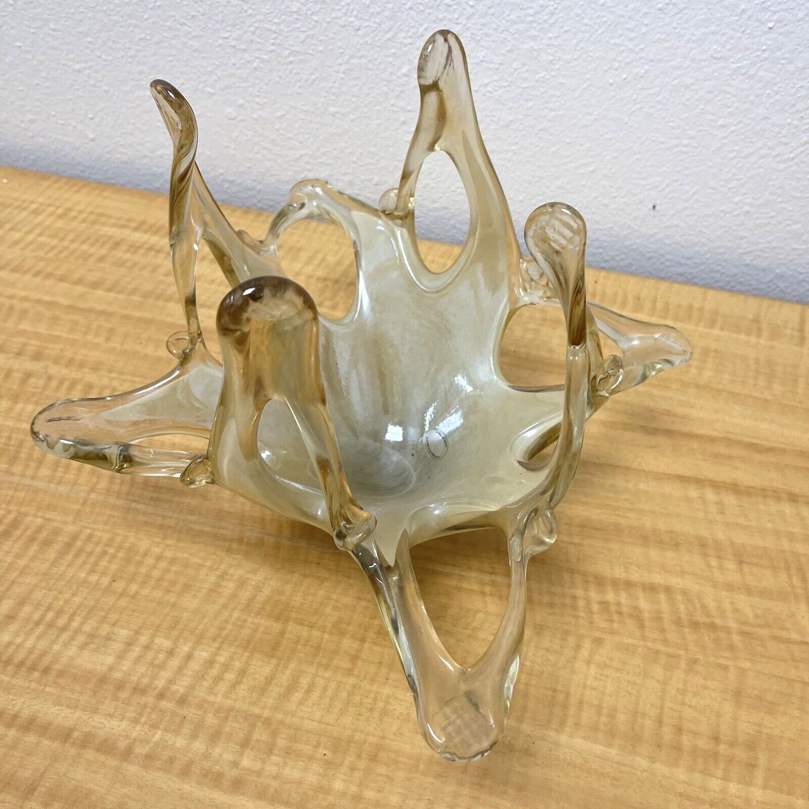 Murano Italian Art Glass Hand Blown Abstract Stretched Swirl Dish Shell Medium