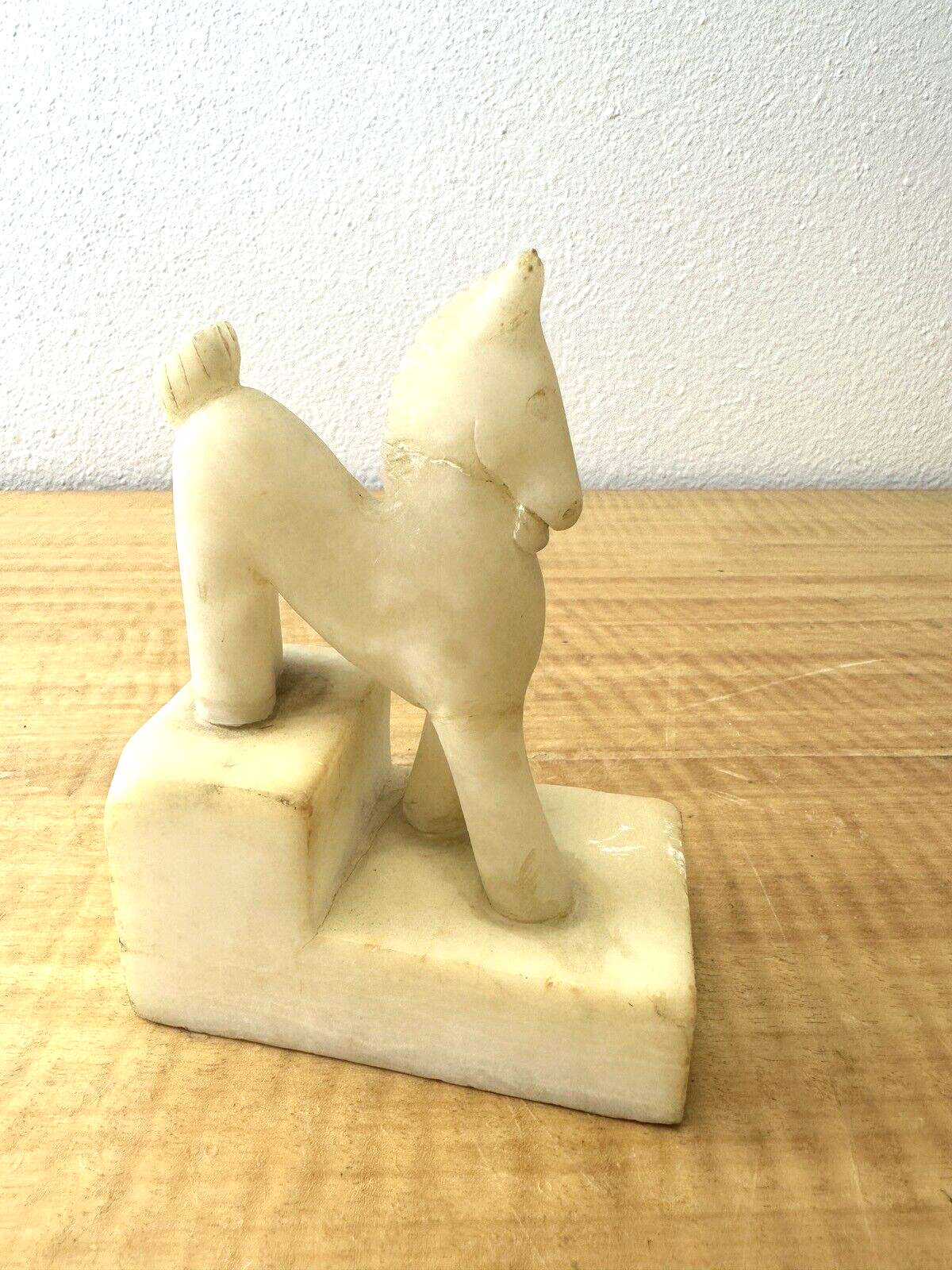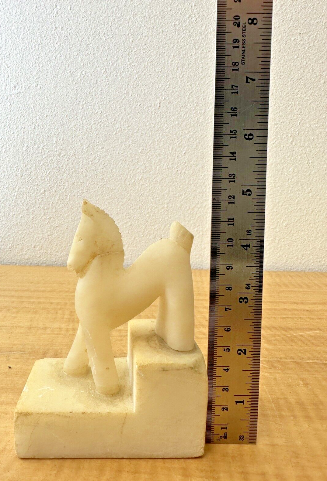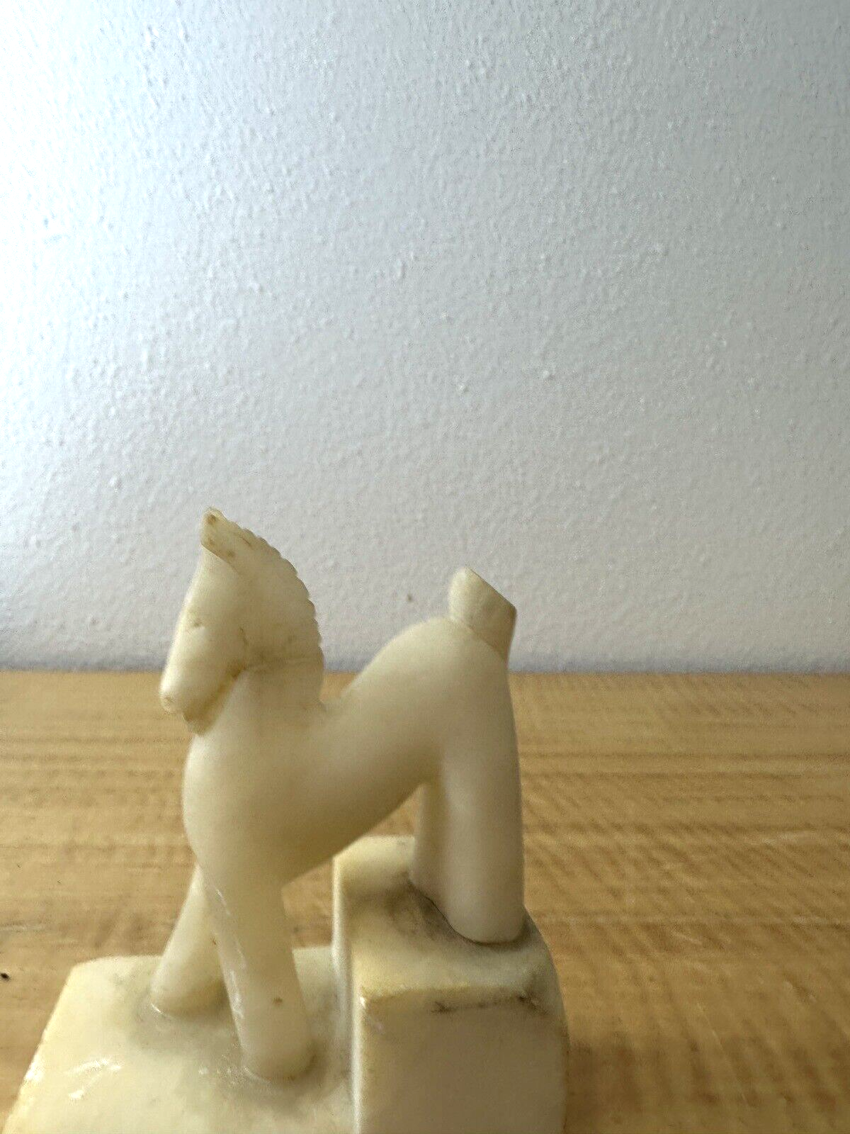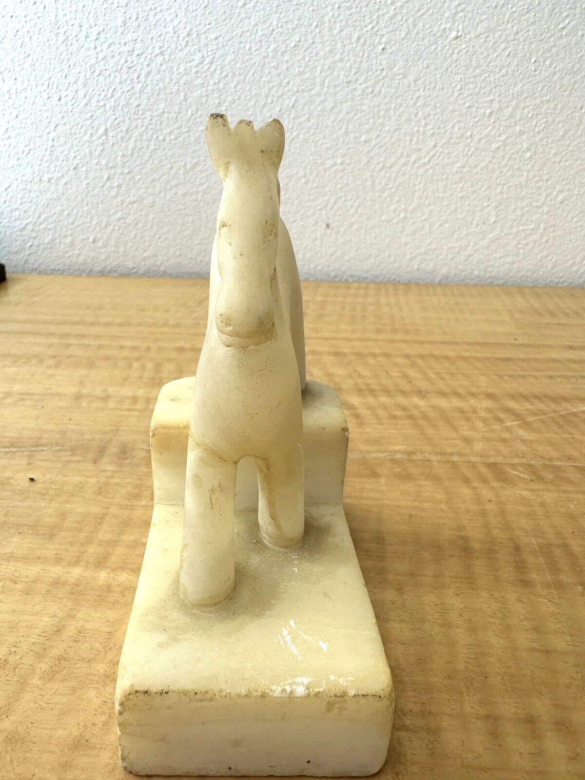 Old Antique Vintage White Marble Stone Rare Golden Horse Figure Statue -Italy