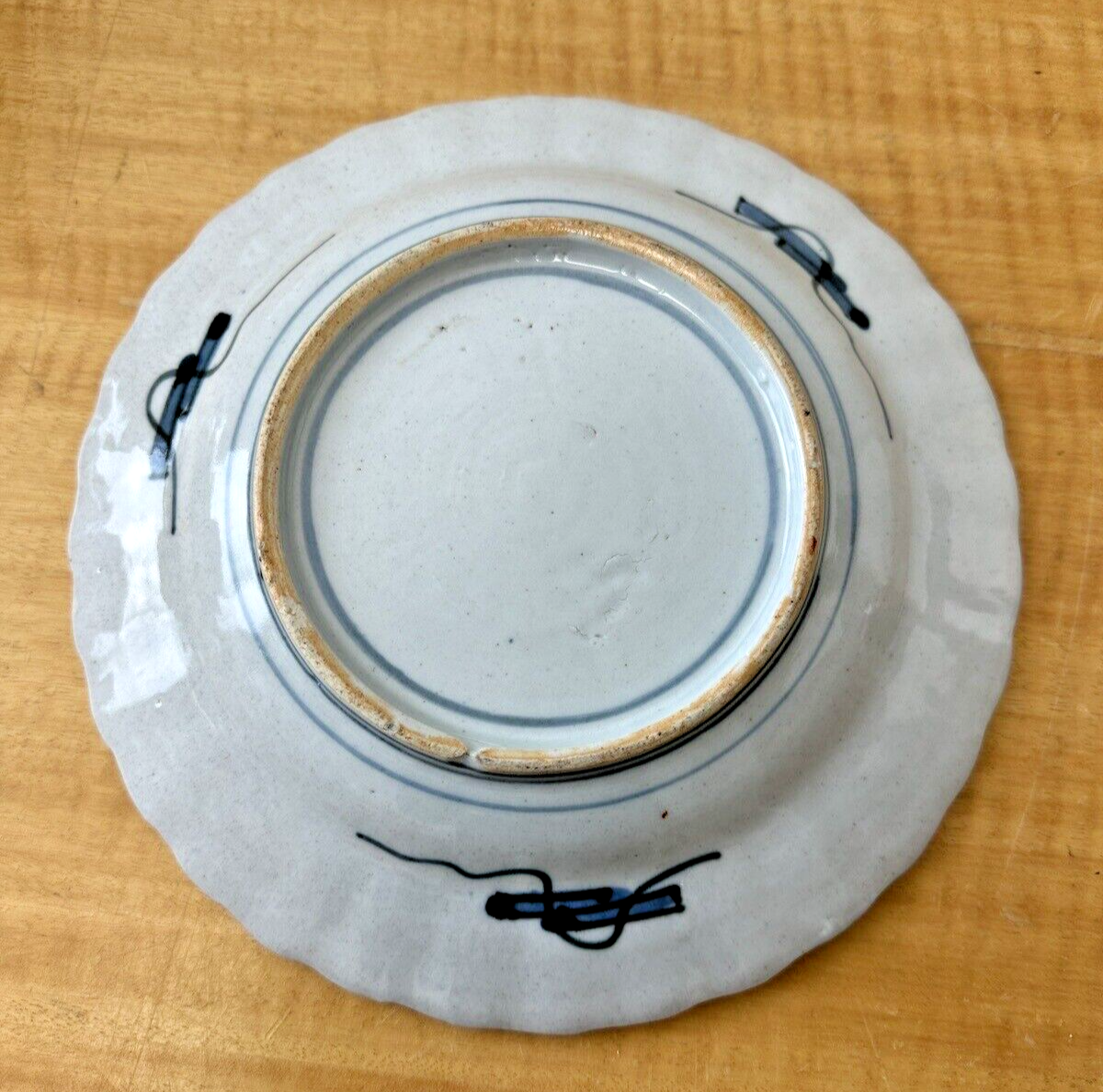 Antique Japanese Imari Porcelain Scalloped Plate Pot of Flowers & Birds