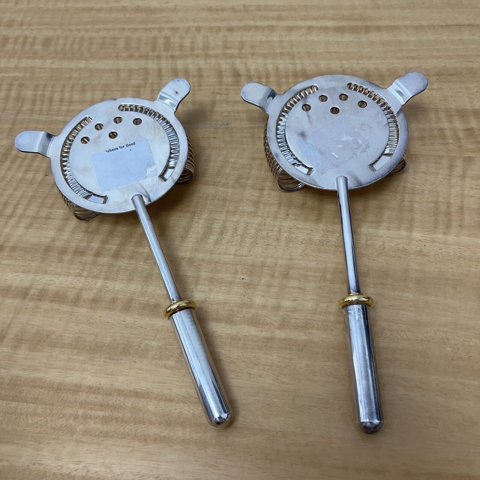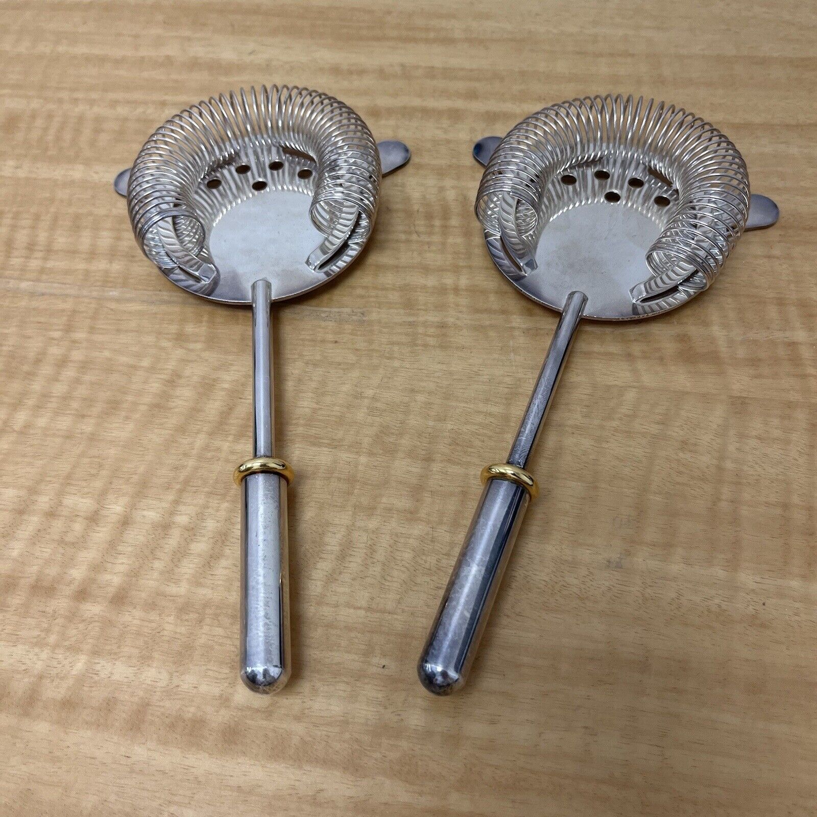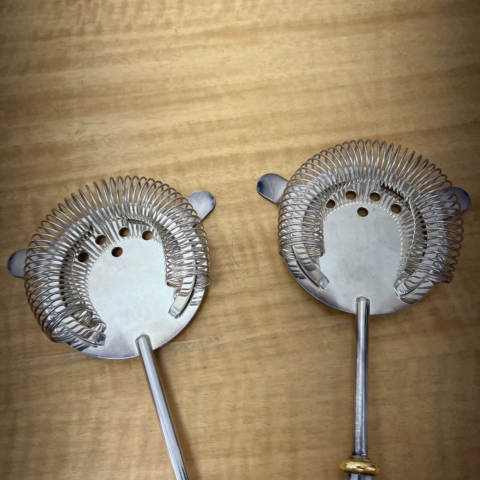 2 - PM Italy Mid Century Modern Silver Plate brass Bar Tool Cocktail Strainers