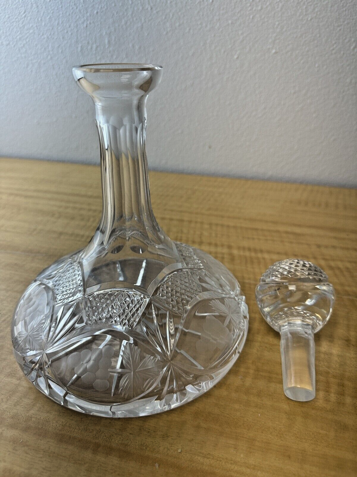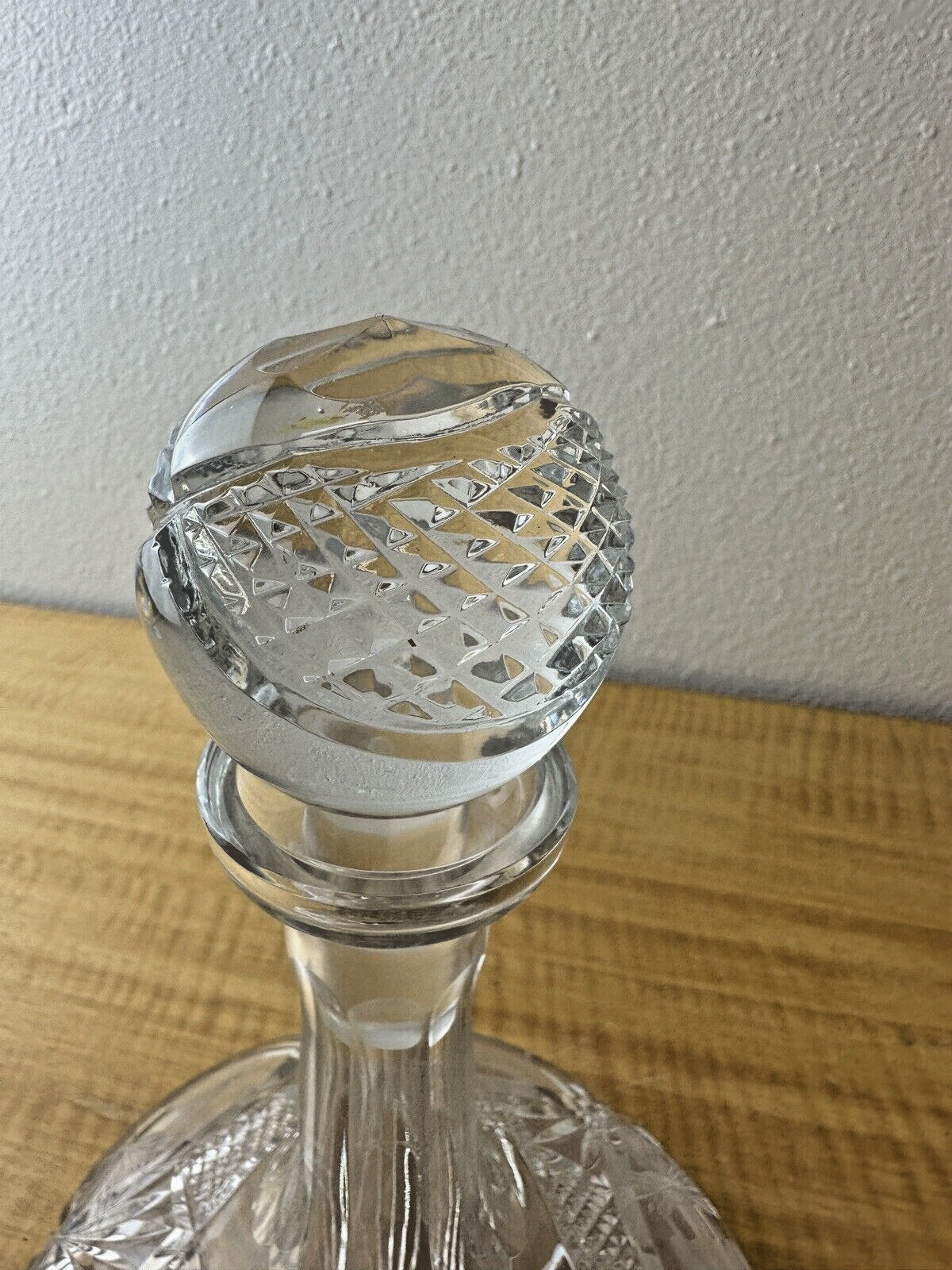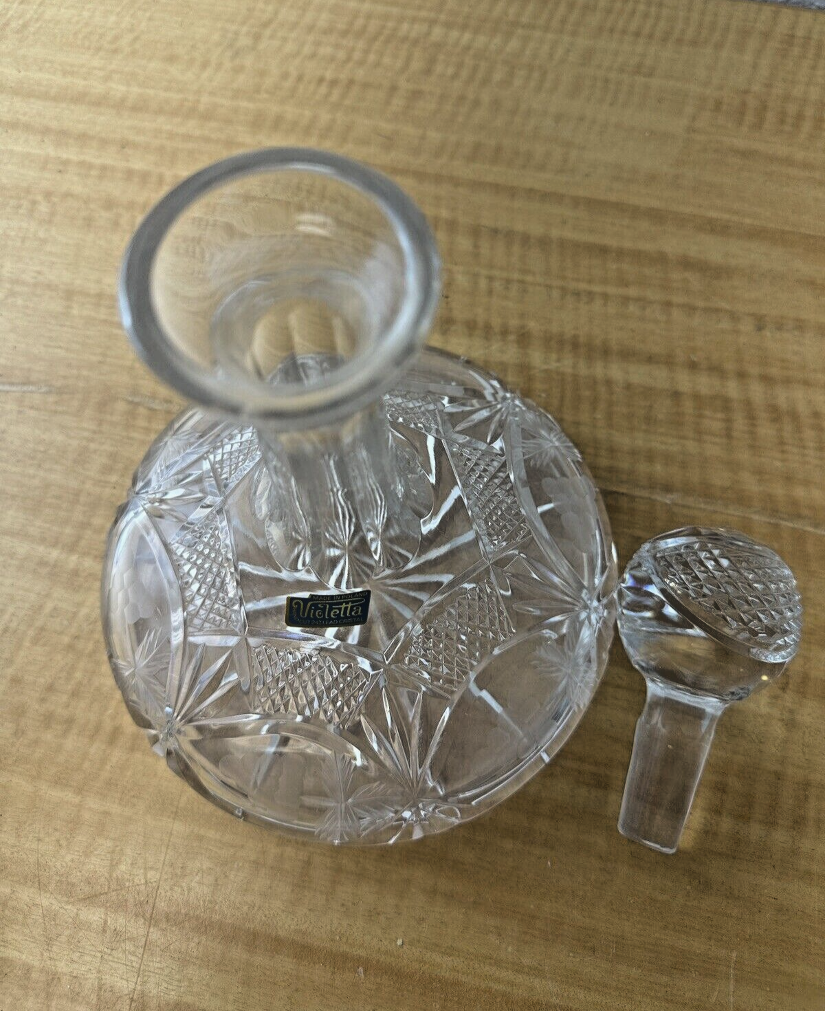 24% Lead Crystal Flat Round Whiskey Decantor made in Poland (1970s?)