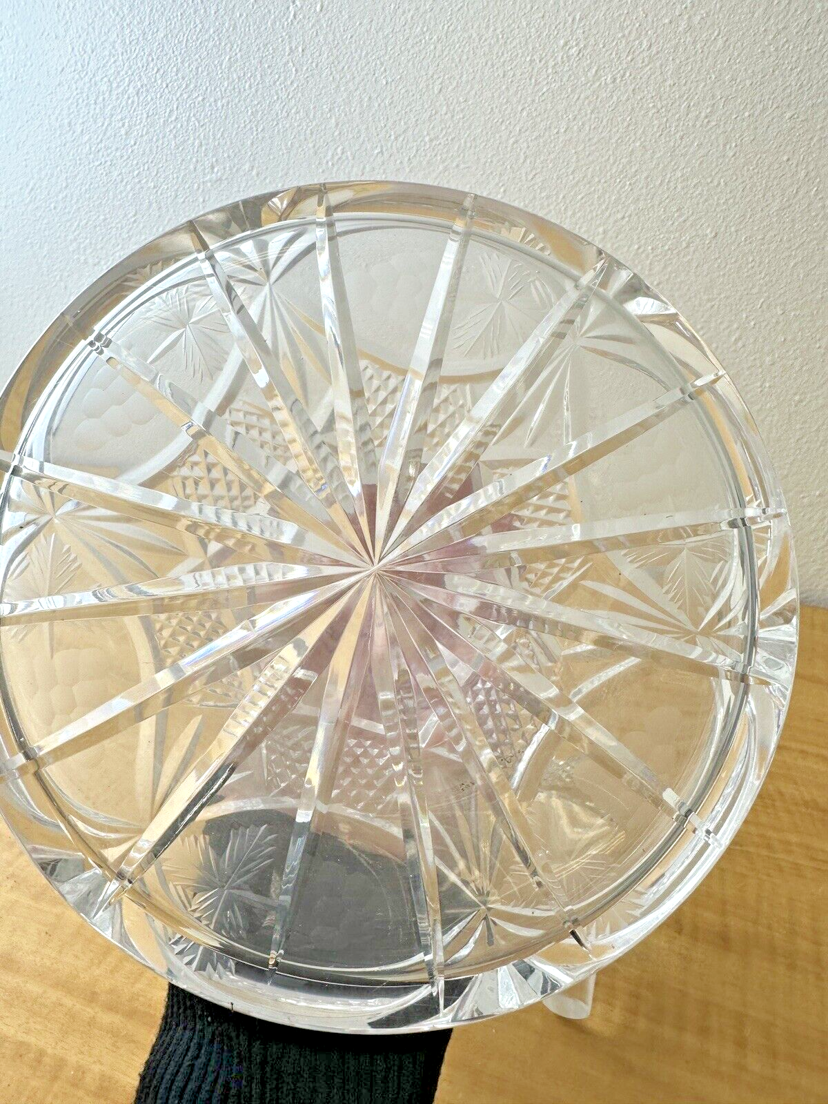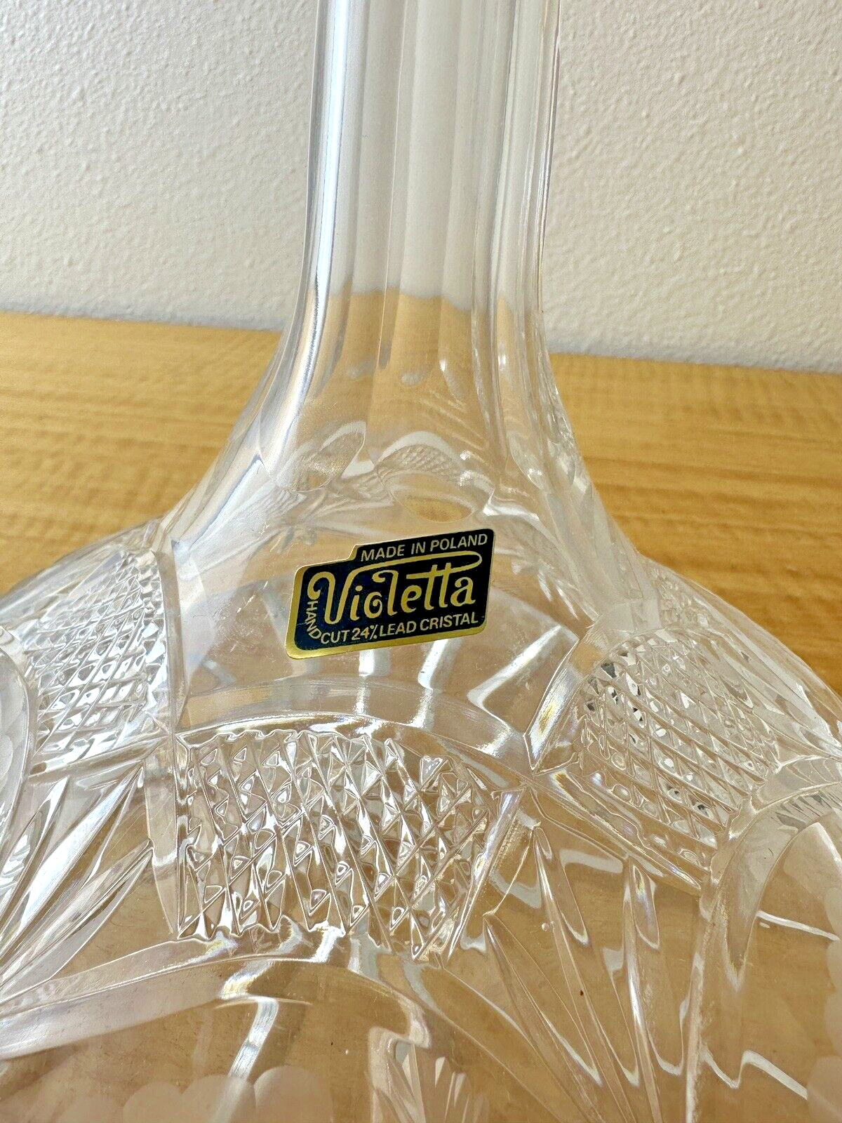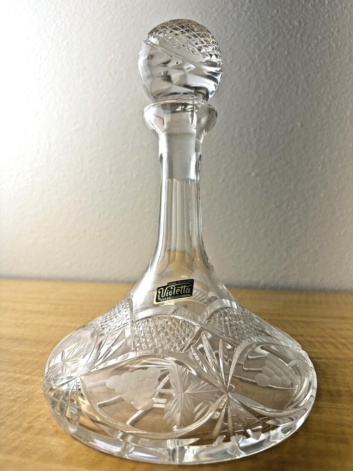 24% Lead Crystal Flat Round Whiskey Decantor made in Poland (1970s?)