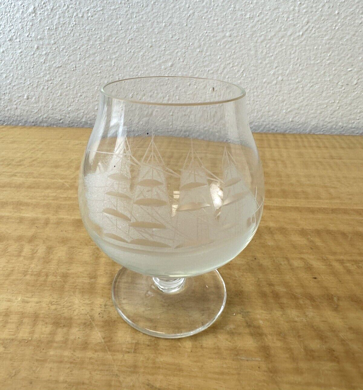 VINTAGE MCM Cutty Sark Whiskey Etched Glass Clipper Ship Brandy Snifter Nautical