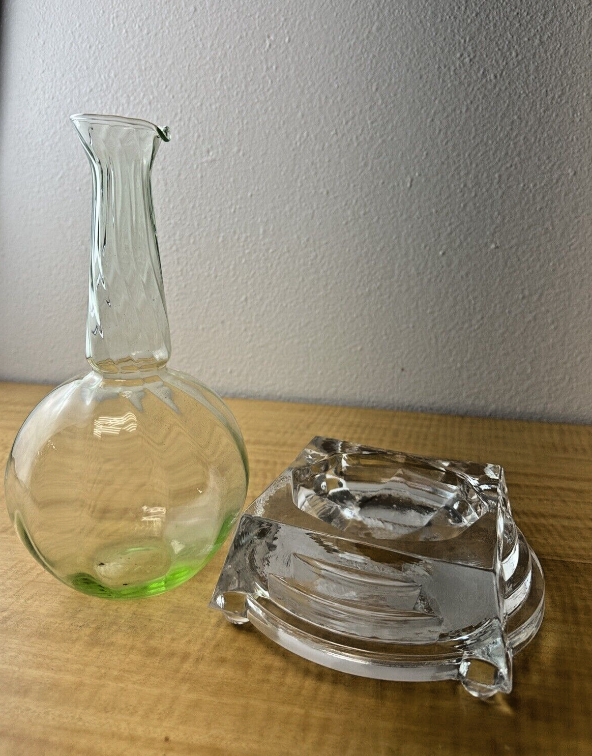 Glass art 2 pieces, BOREK SIPEK, Wine carafe in holder,