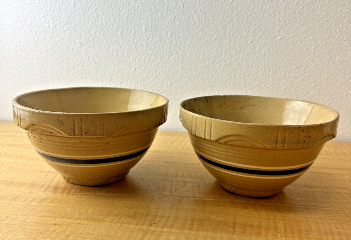 Set of 2 McCoy #12 Oven Ware U.S.A. Pottery Blue & White Banded Mixing Bowl