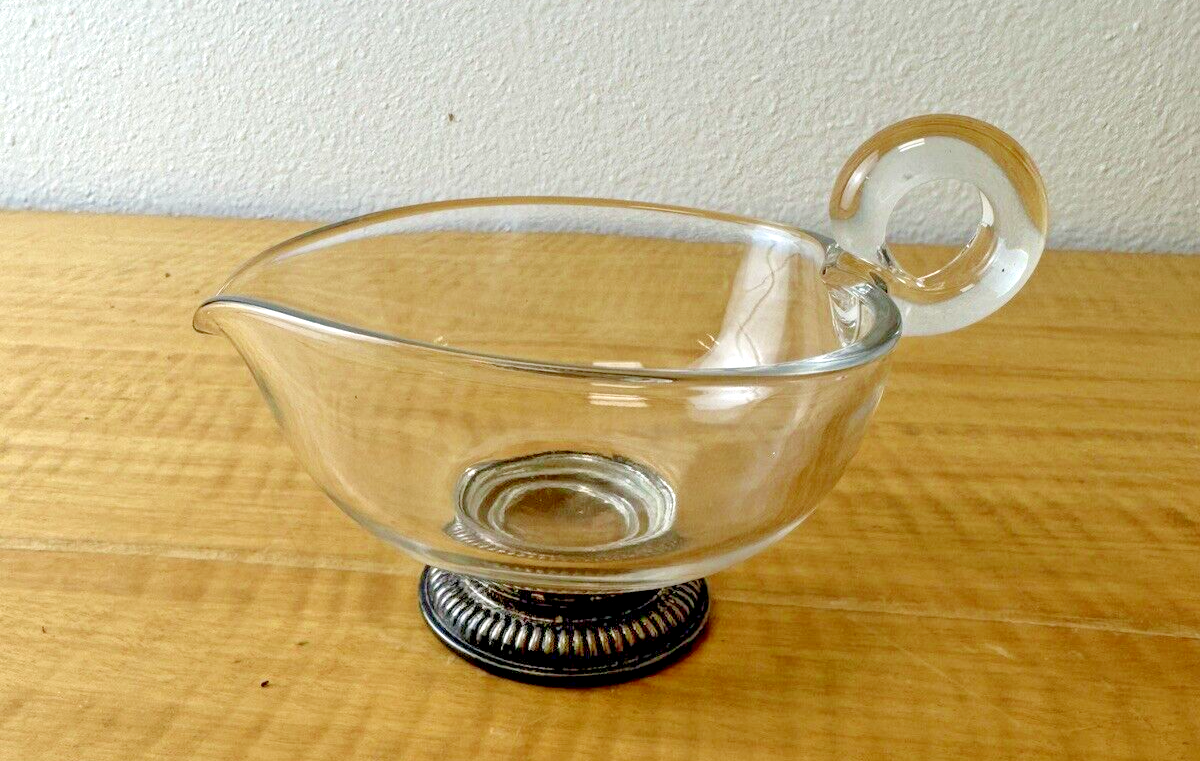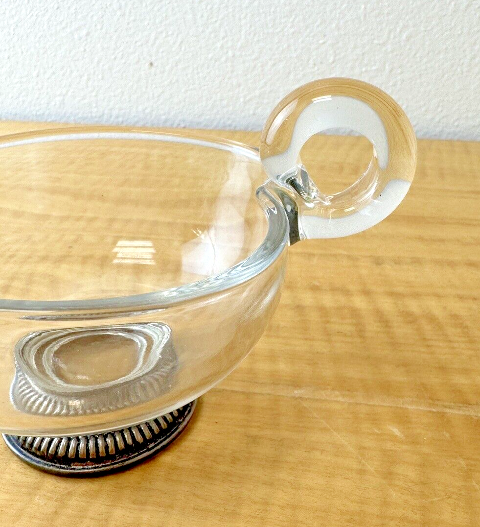 Vintage WHITING Glass Heart Shaped Sauce Bowl w/STERLING SILVER BASE