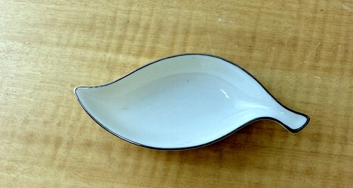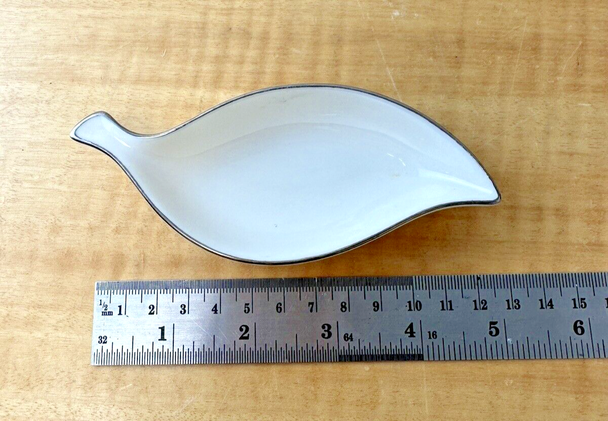 VINTAGE LENOX CHINA OLYMPIA PLATINUM .. 5 INCH LEAF SHAPE ASH TRAY