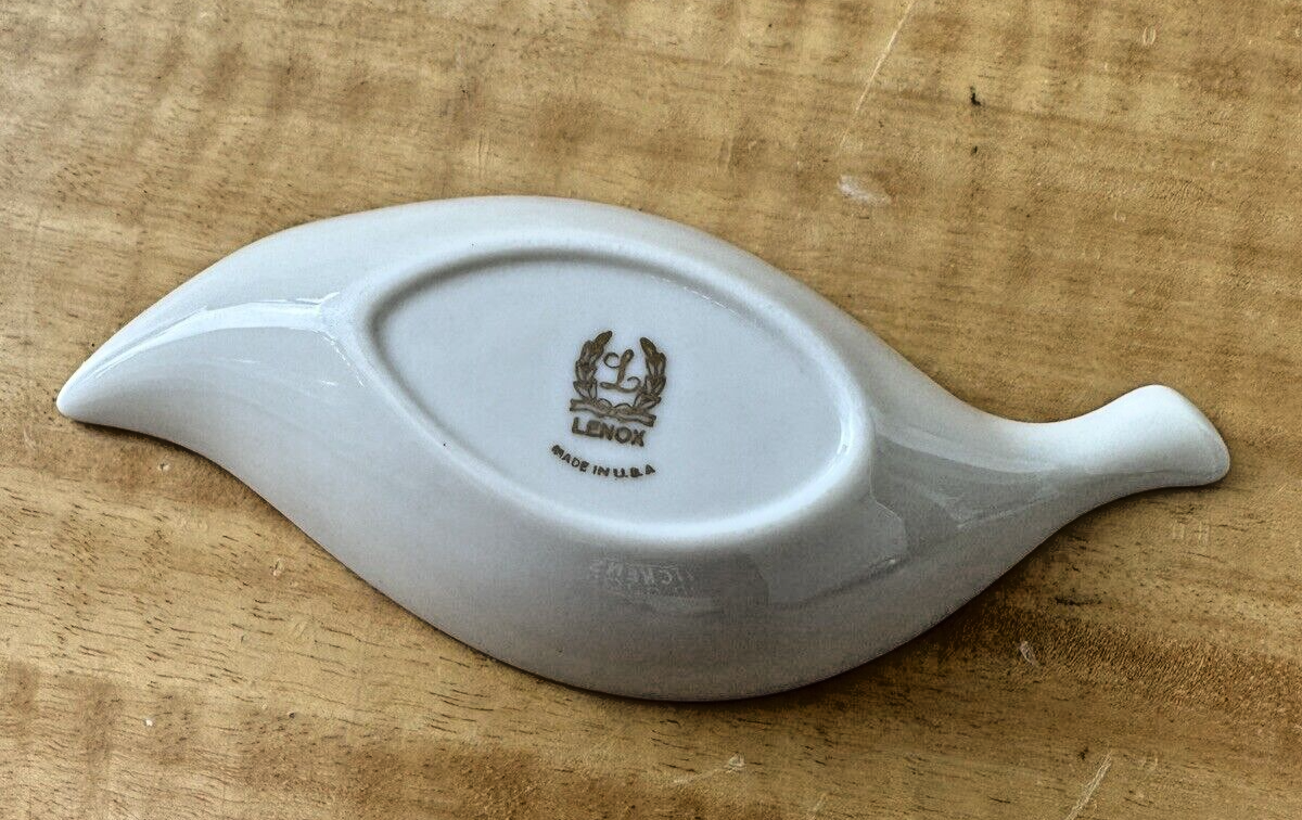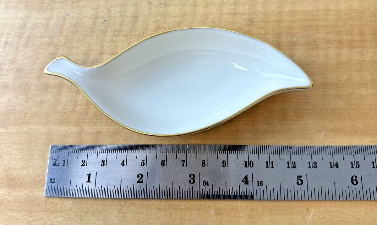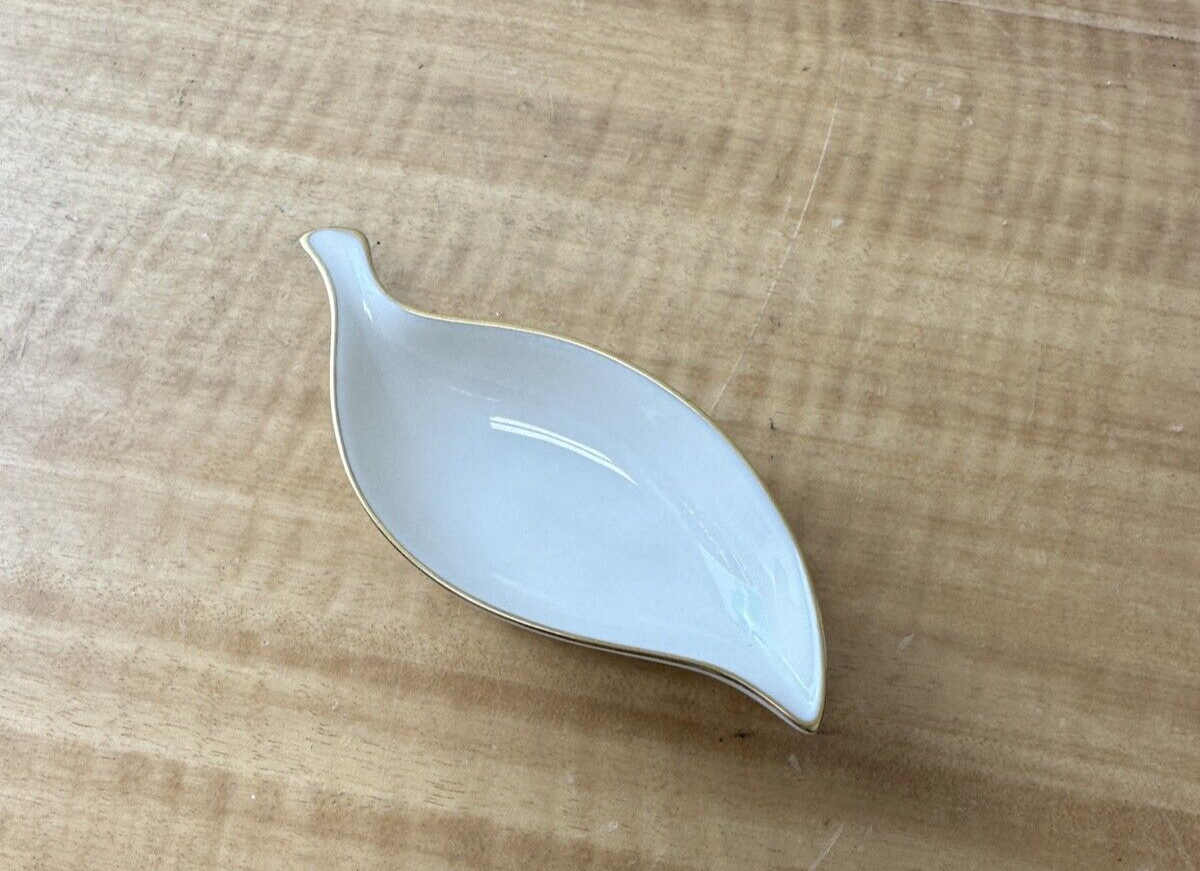 Lenox Leaf Trinket Dishes Set 2 White With 24k Gold Edging Made USA