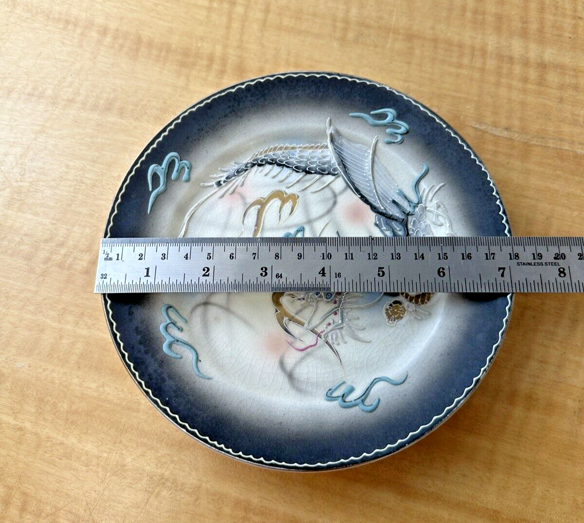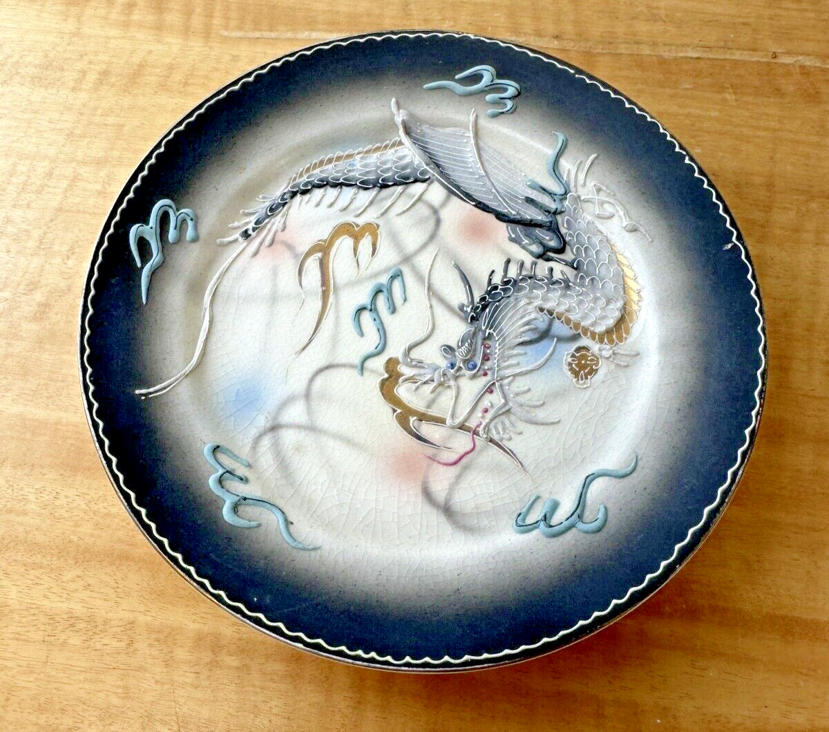 Vtg Moriyama Moriage Hand Painted Dragon Smokey Gray Dessert Plates Japan 7“