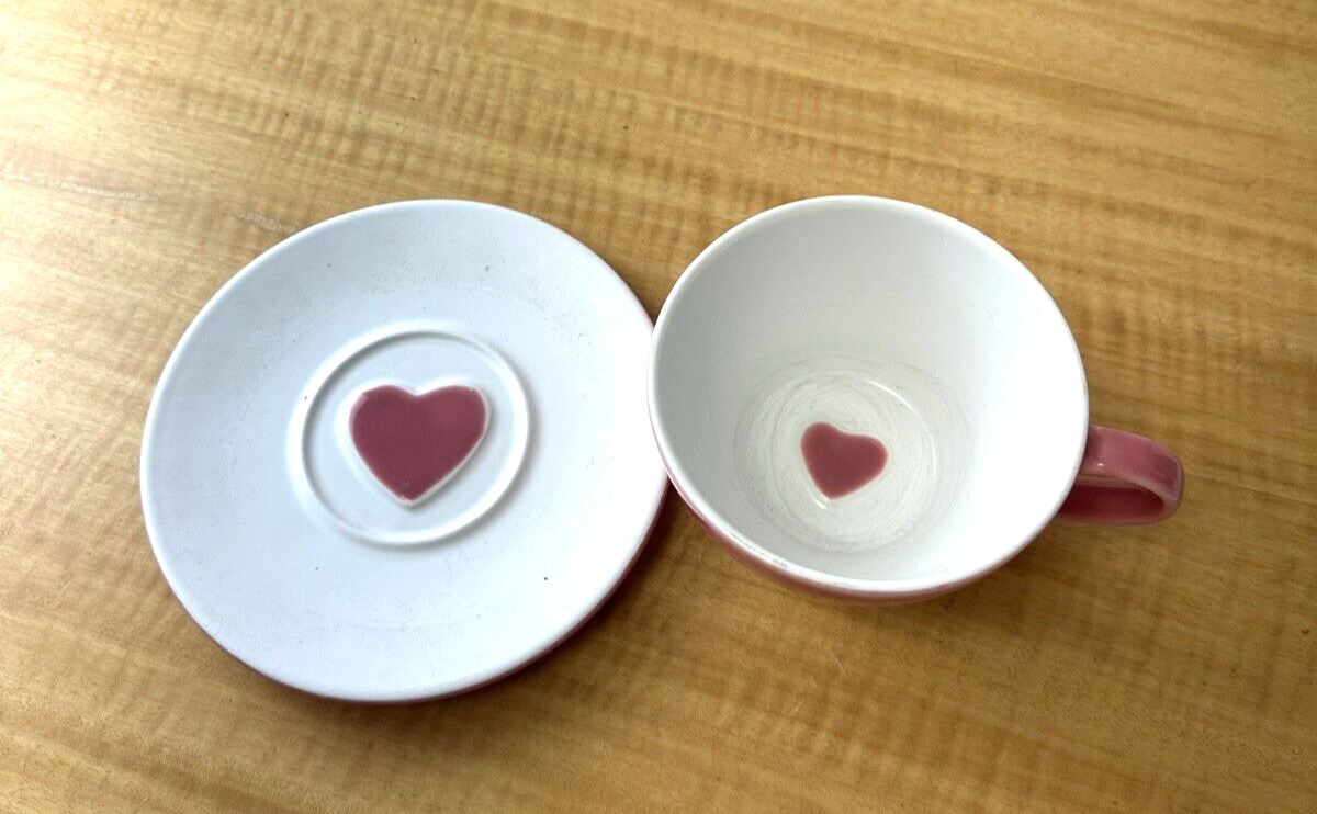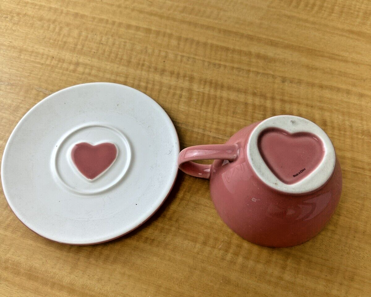 Starbucks 2005 Valentine Pink & White Heart Coffee Latte Cup And Saucer Set