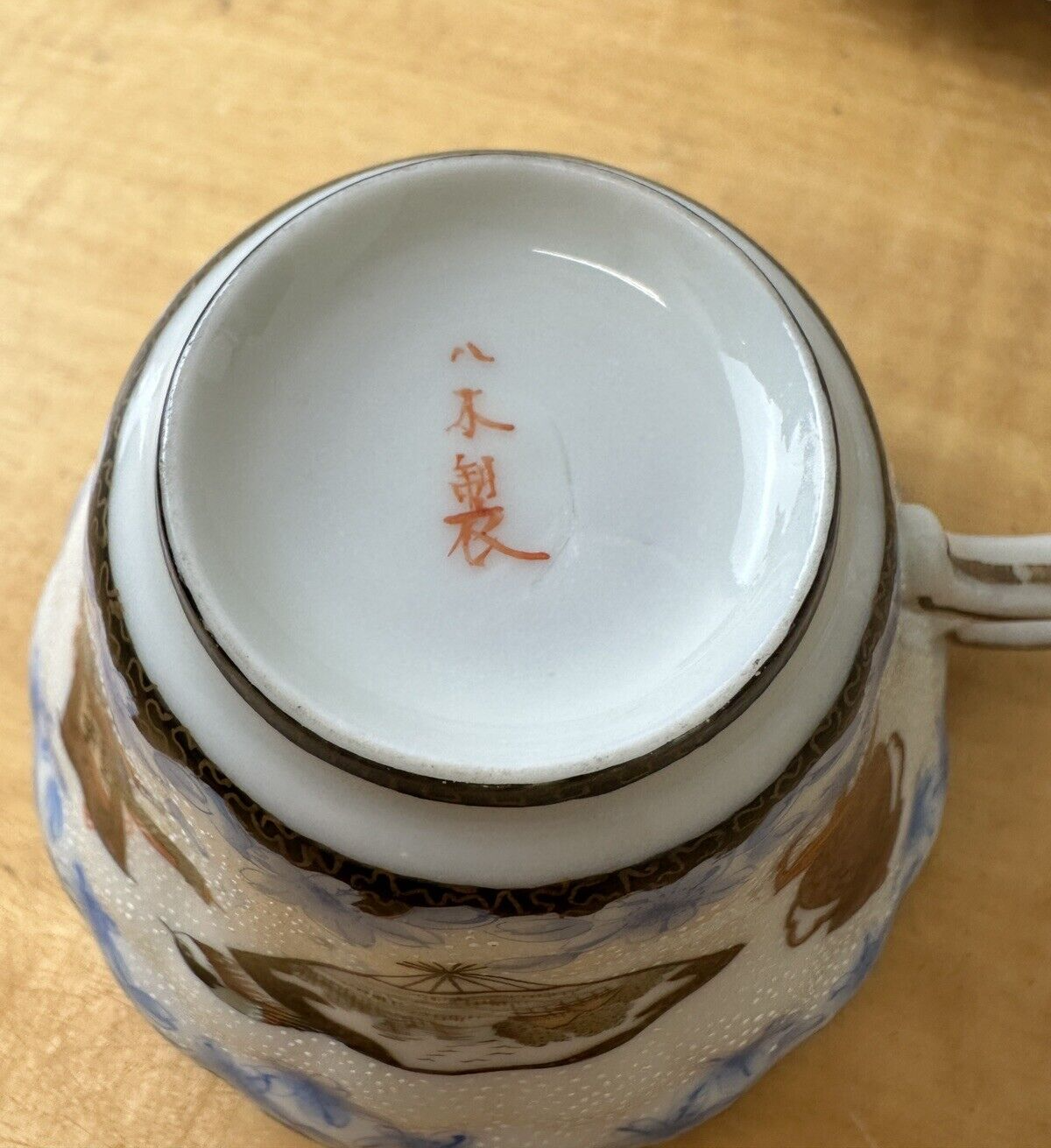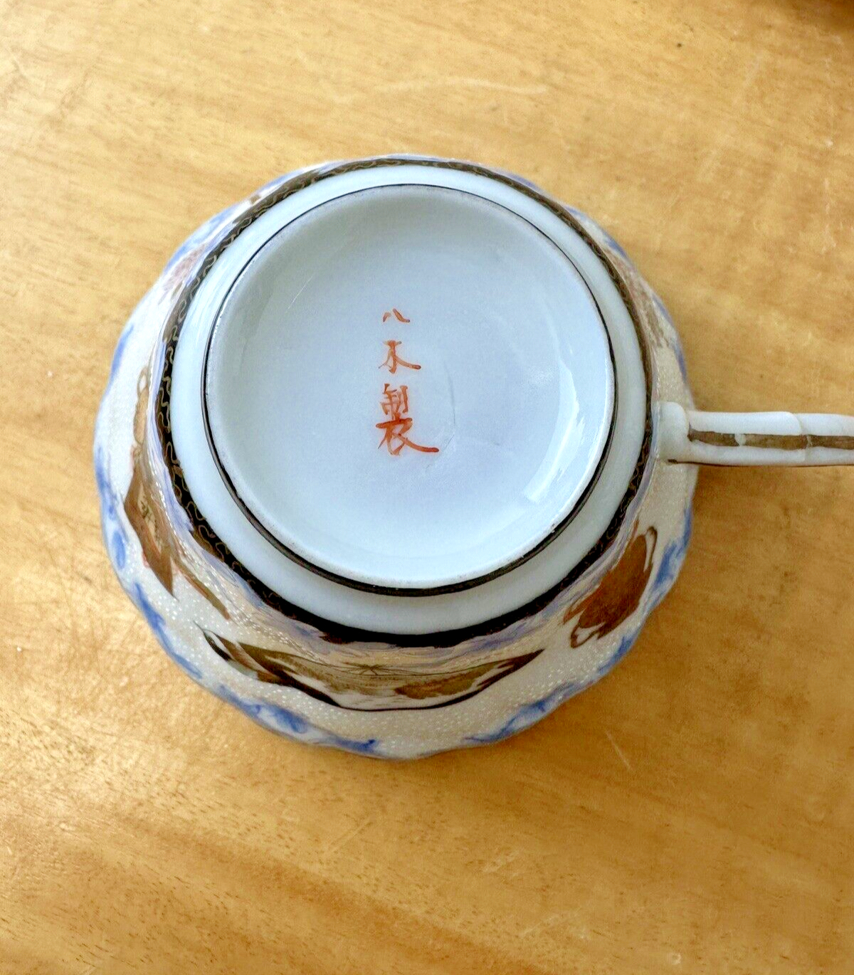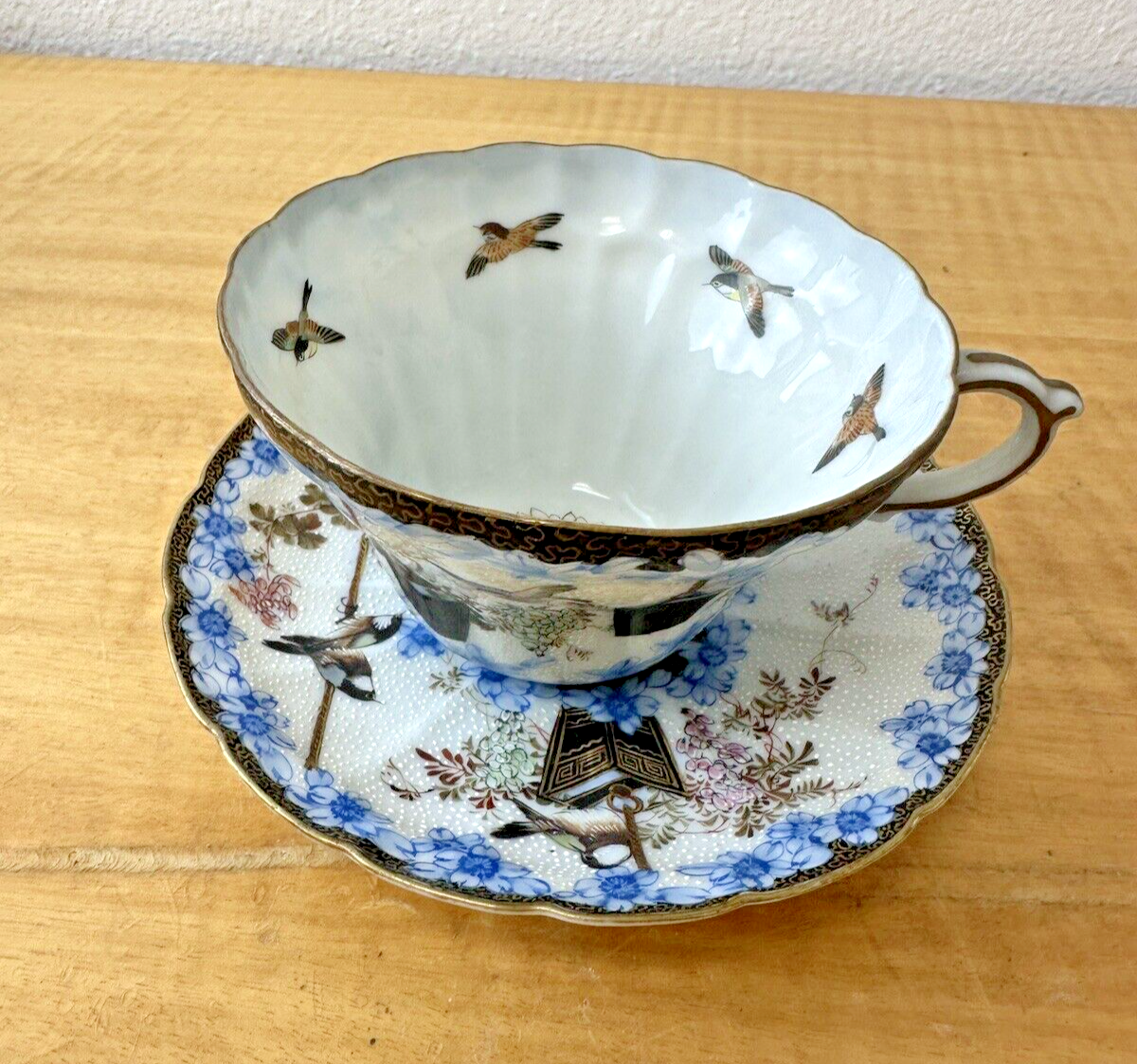 Gorgeous! Kutani Egg Shell Porcelain Bird Cup and Saucer Meiji Period
