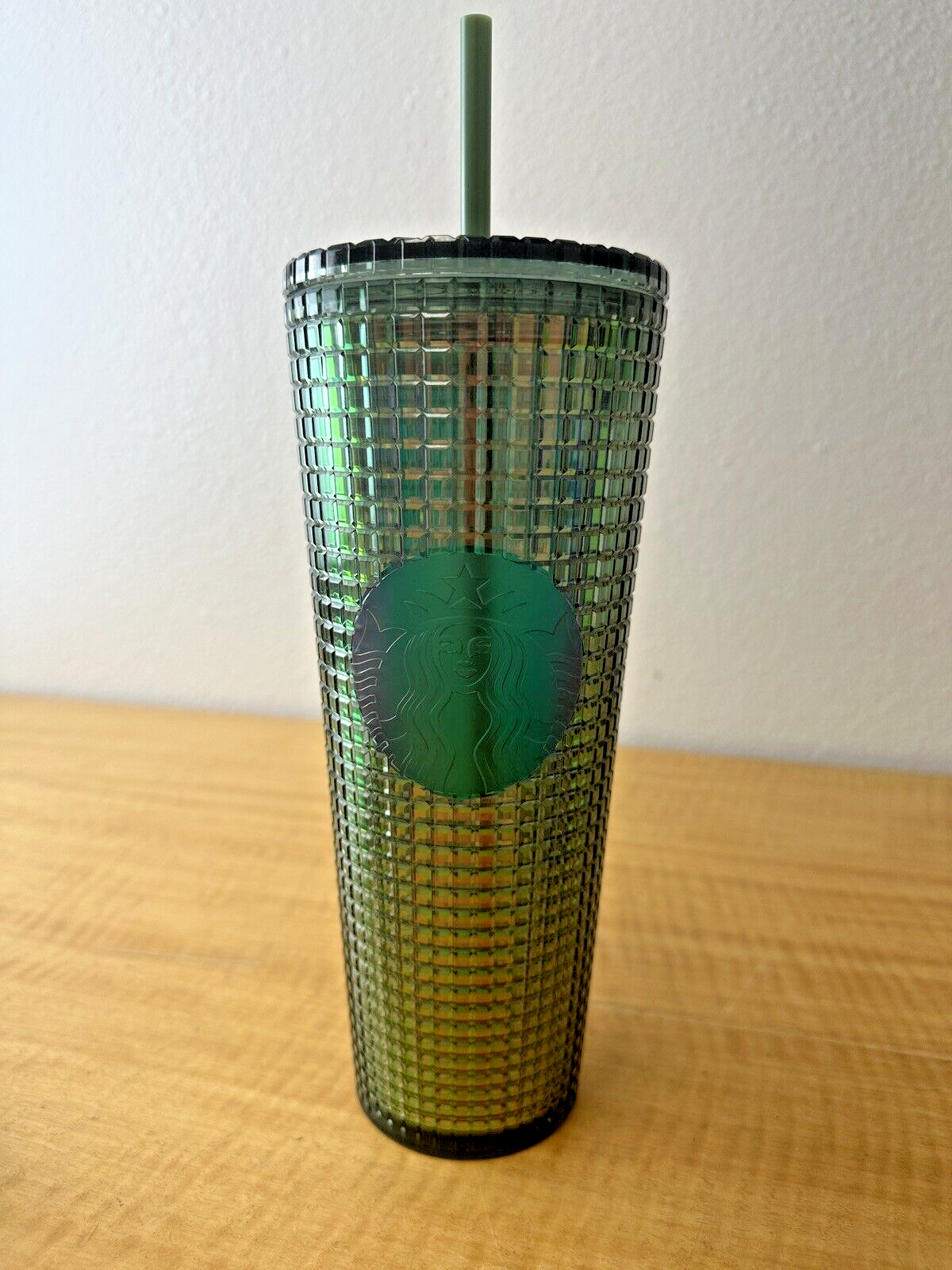 Starbucks 2022 Fall Green Aqua Grid Rainforest Venti Cold Cup Tumbler 24oz
