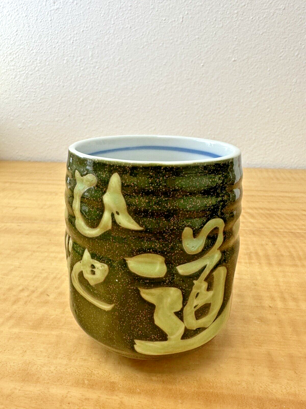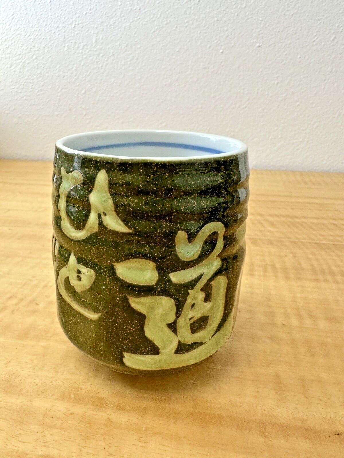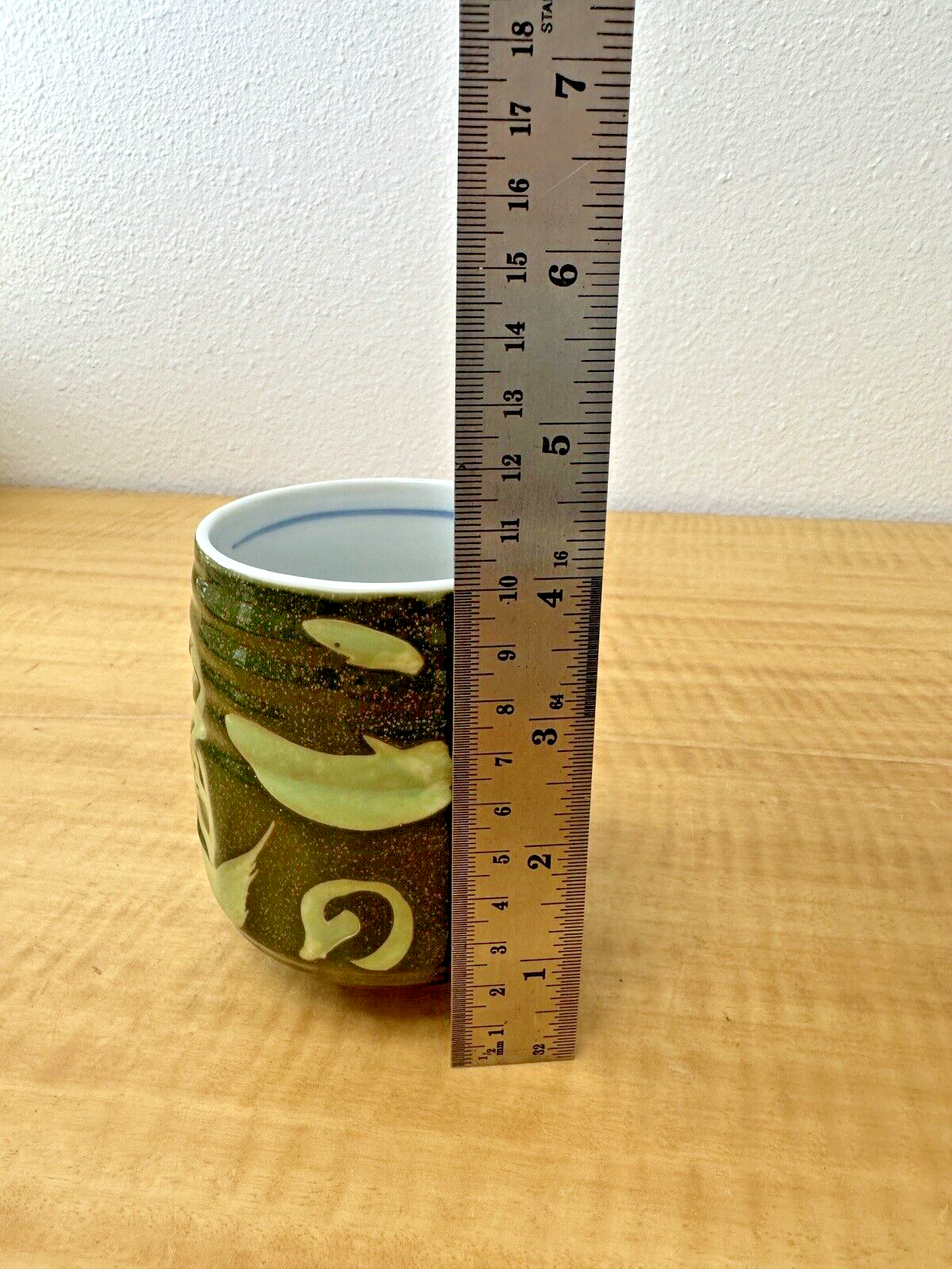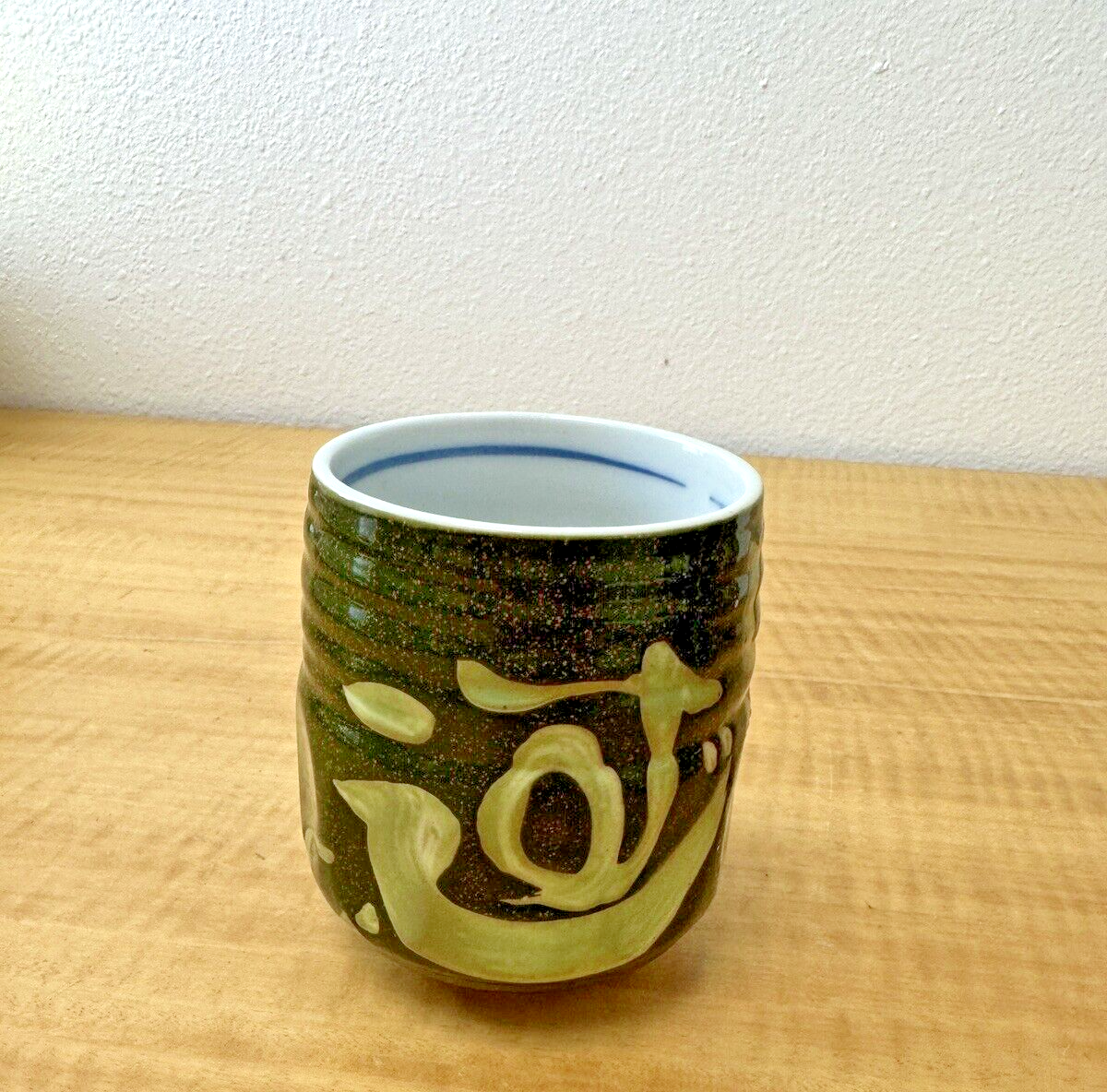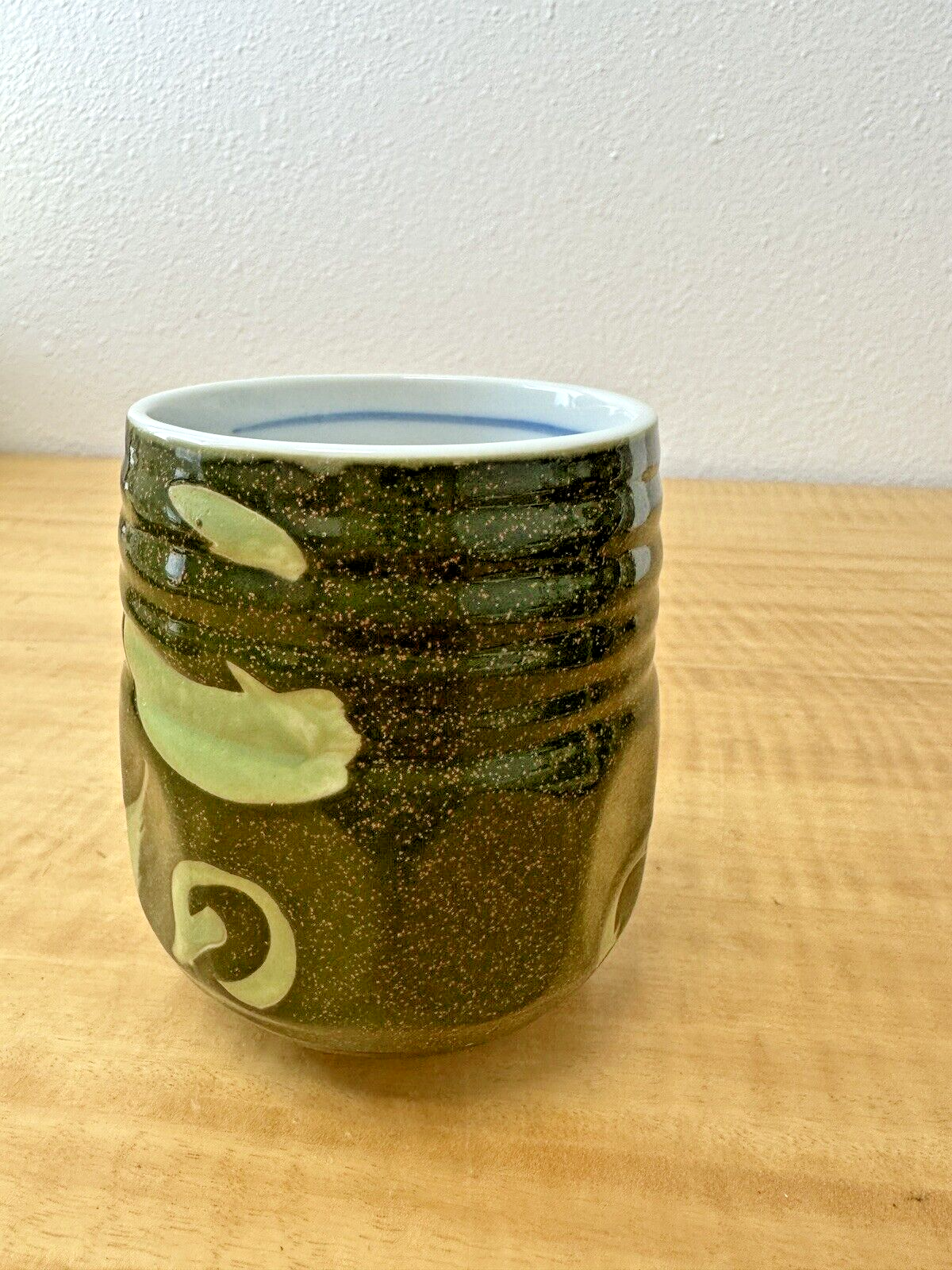 Utsawa Vintage Ceramic Cup- Hand Painted- Stoneware Ceramic- Forest Green