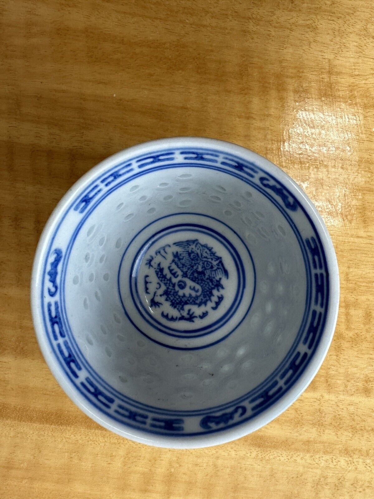 Vintage Chinese Blue & White rice eye grain pattern egg holder cups