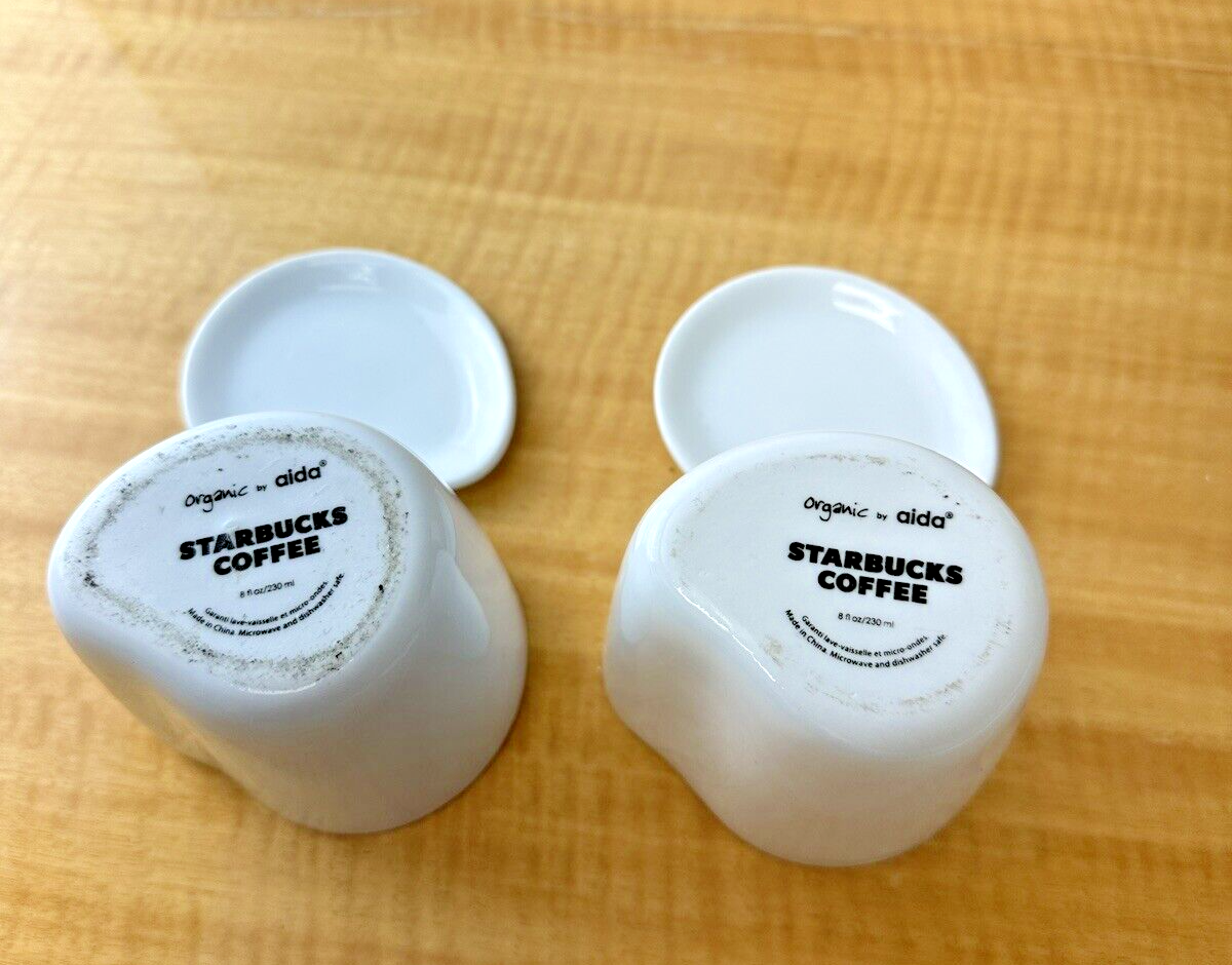 Starbucks Organic By Aida 8 Ounce Coffee Tea Cup Mug With Coaster Lid New 2 set