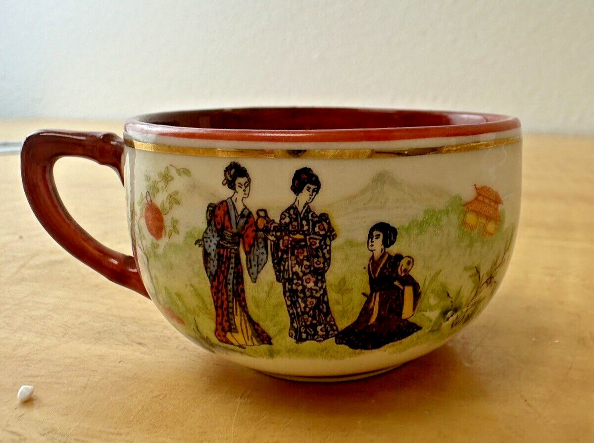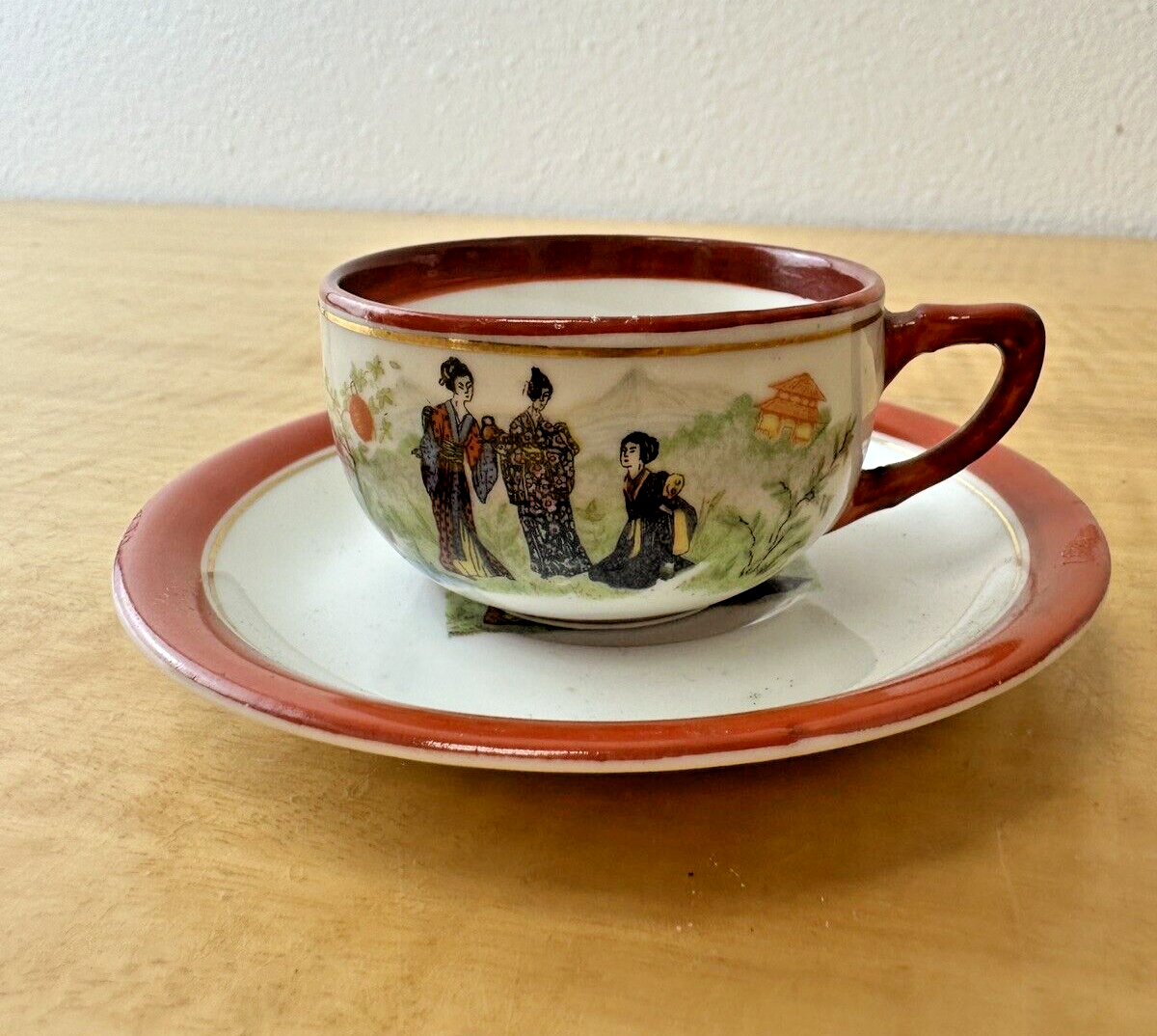 Antique Japanese Tea Cup/Saucer Asian Handpainted Kutani Geisha Japan