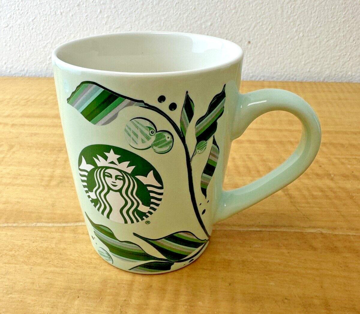 Starbucks 2021 Mint Green Leaves & Mermaid Logo Ceramic Coffee Mug Cup 10oz