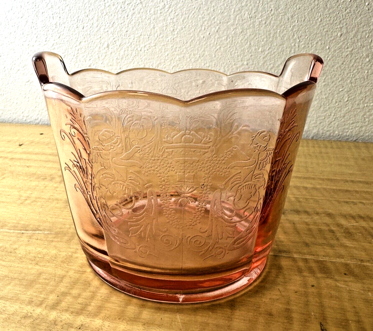 Vintage Elegant Paden City Cupid Pink 4 3/4" Tab-Handled Ice Tub - RARE
