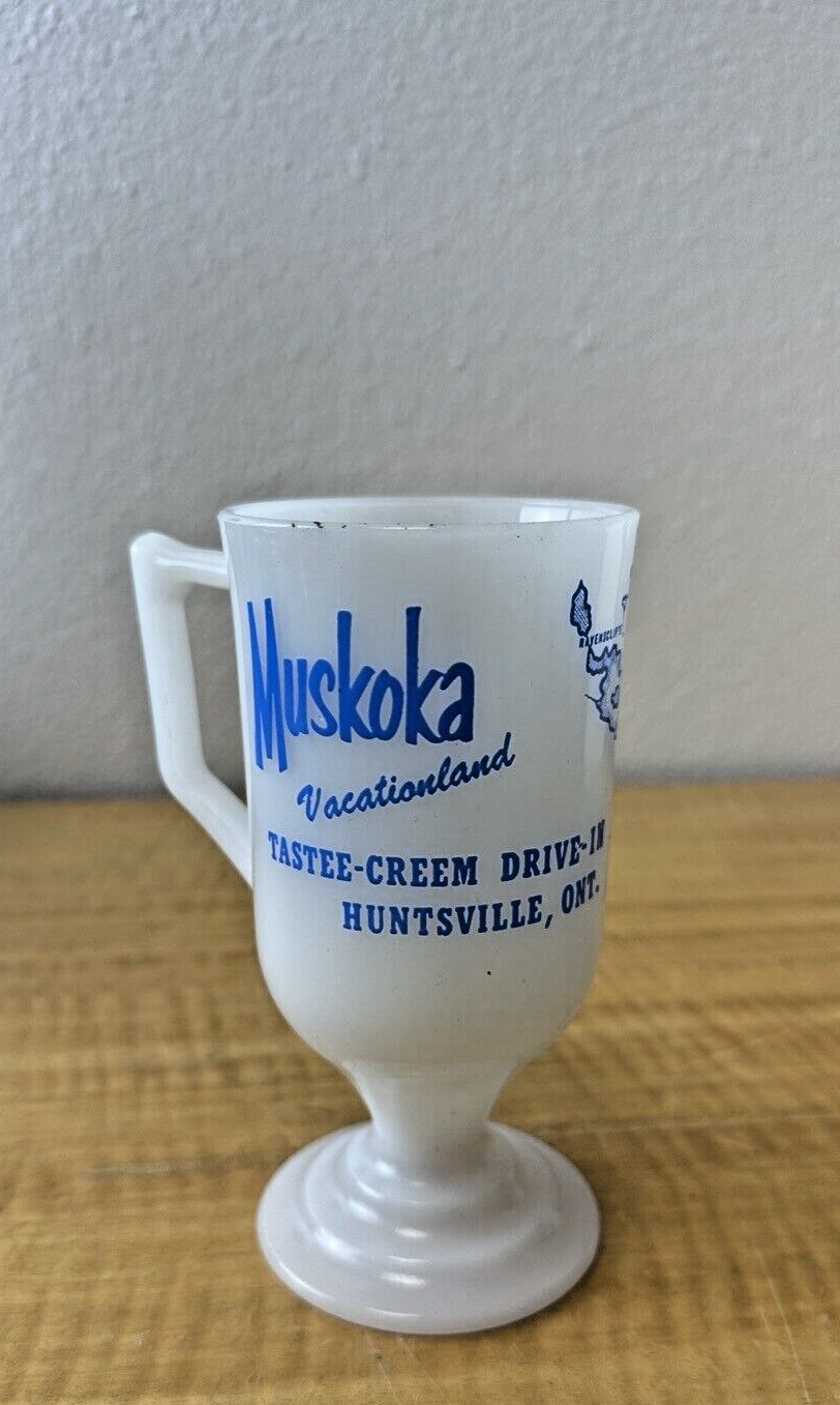 Vintage Muskoka White Frosted Pedestal Souvenir Coffee Mug