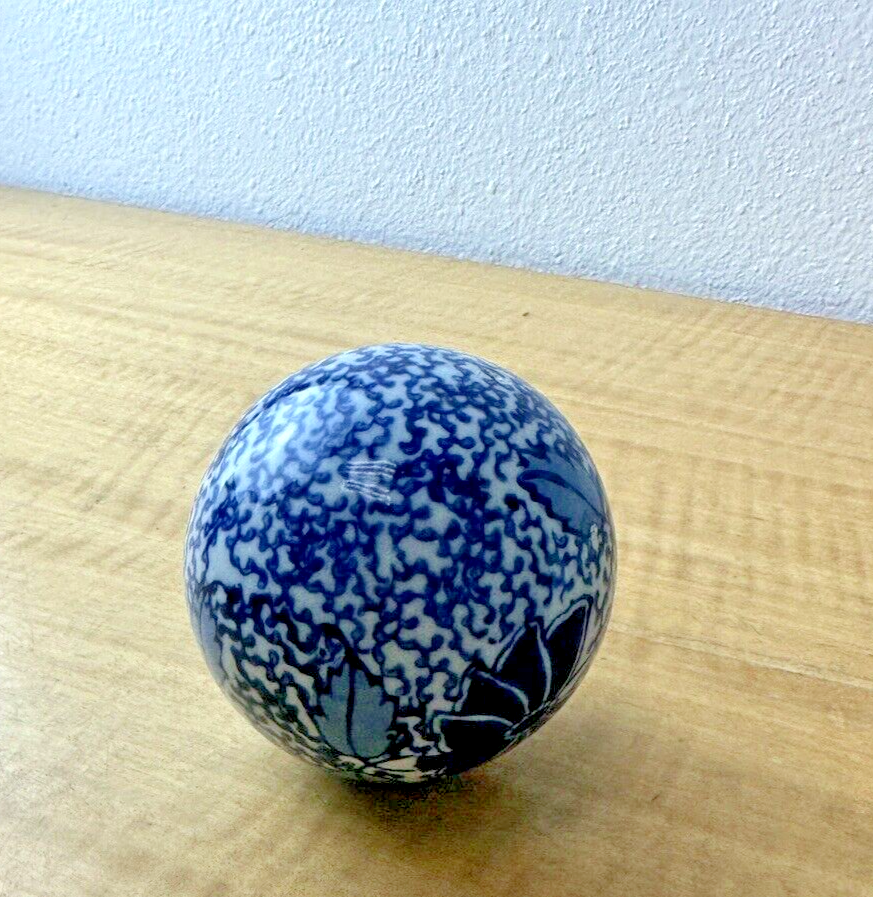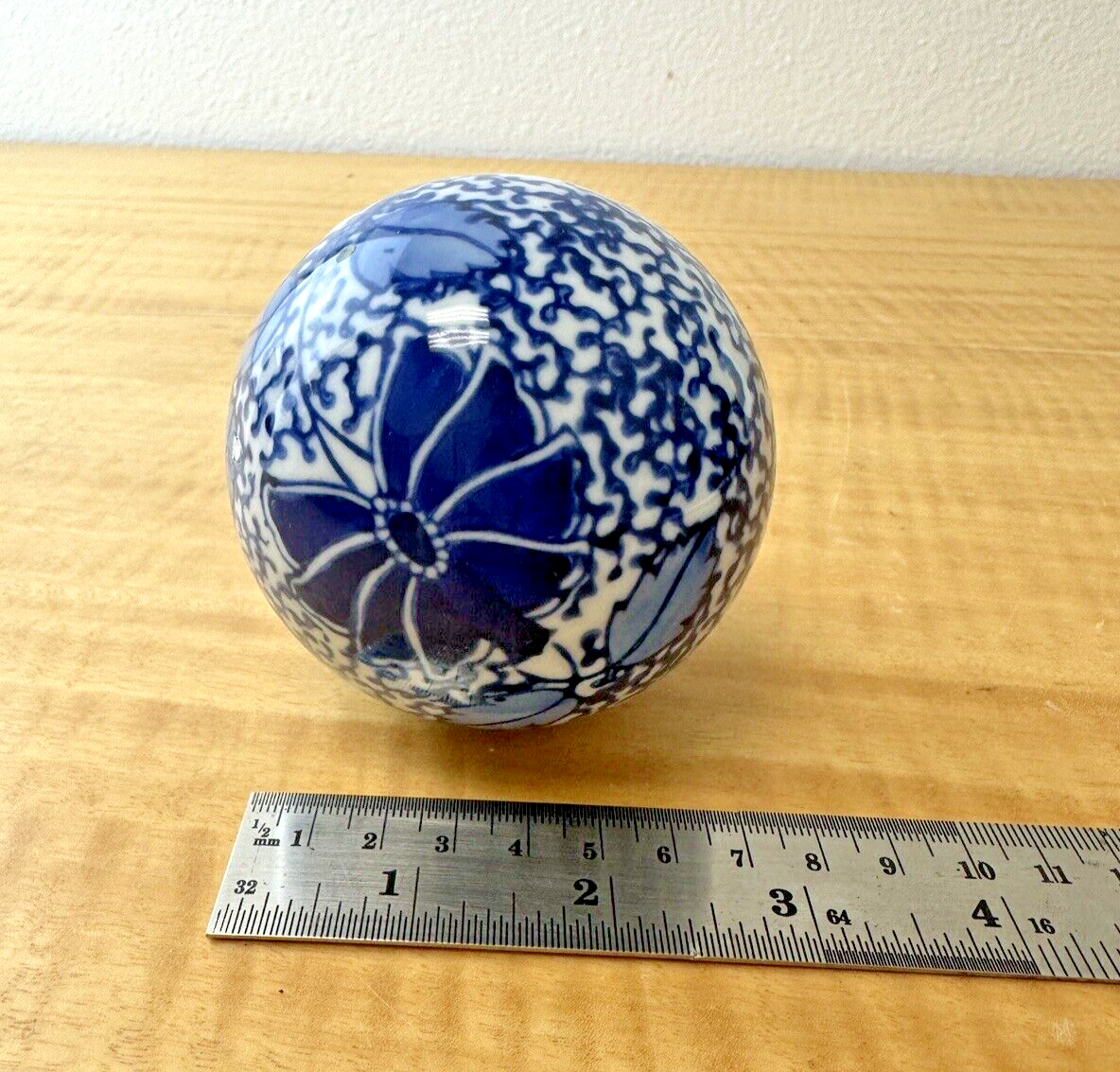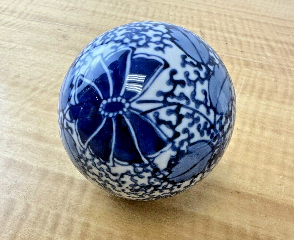 1 Blue & White Porcelain Ceramic Decorative Carpet Balls Chinese floral 3"