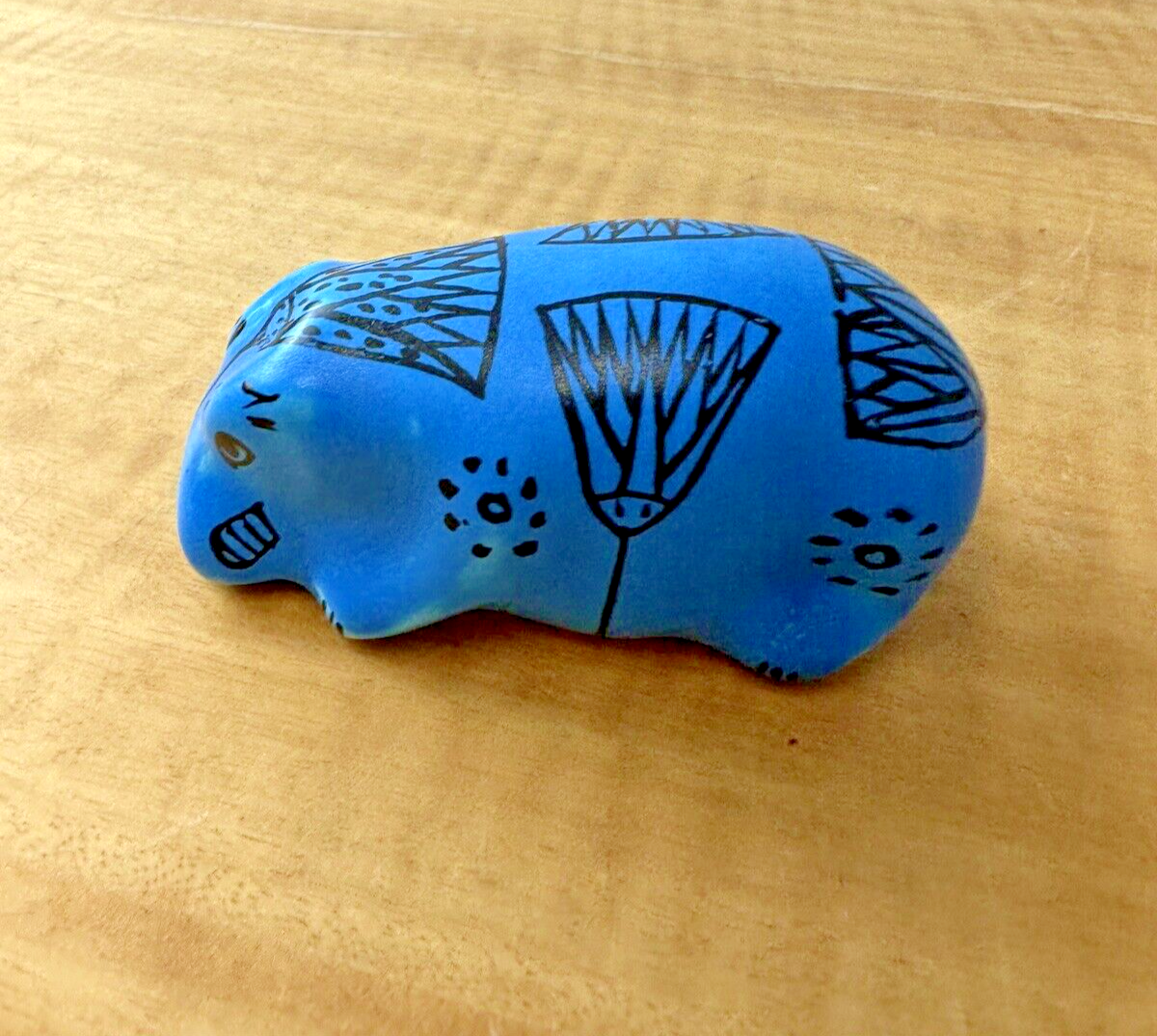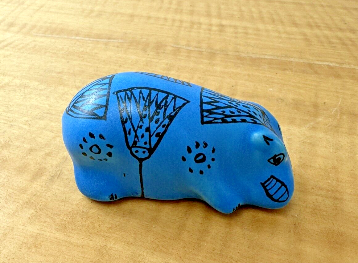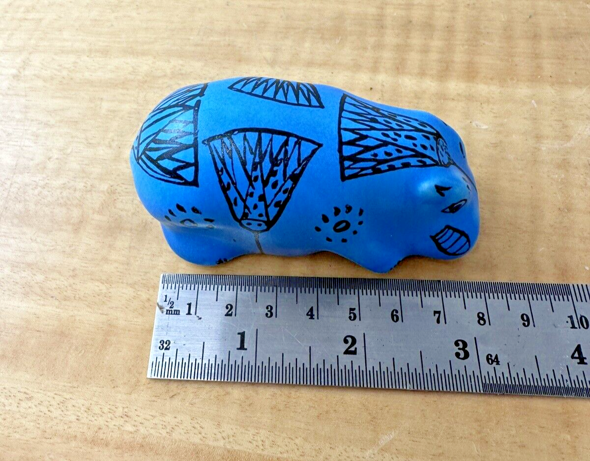 Hippopotamus Ceramic Art Figurine African Blue Small 3.5"