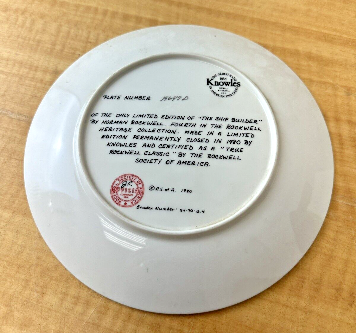Knowles 1980 Plate ~ Norman Rockwell: The Ship Builder ~ Bradex 84-70-3.4